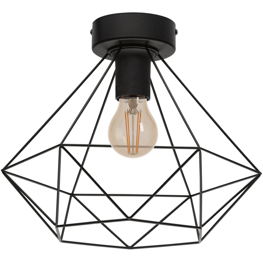 The EGLO Tarbes Black Geo Ceiling Light adds industrial style to any room. Its black steel finish and geometric wire design create a sophisticated yet versatile look. An exposed bulb (1 x E27, not included) allows for a warm, inviting ambience, a retro-style bulb is recommended to complete the vintage aesthetic. The adjustable cord offers flexible installation options, while the light's captivating interplay of light and shadow adds depth and visual interest.