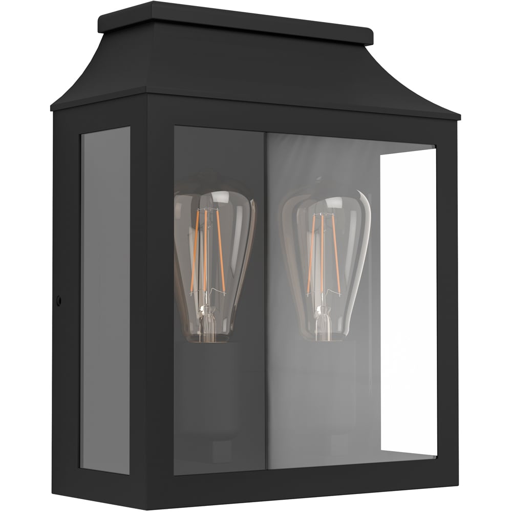 Embrace the fusion of industrial and modern aesthetics with EGLO Soncino 2L Exterior Wall Light. This wall light has a sleek, modern design with two exposed lightbulbs and caged, black-cast aluminium construction. Its IP44 rating guarantees durability and suitability for outdoor use. Also, the two large retro-style E27 lightbulbs not included will add to the vintage mood by providing a cosy and welcoming glow. It brings a touch of classic elegance to any outdoor environment, whether it's illuminating your patio, garden, or entrance area.