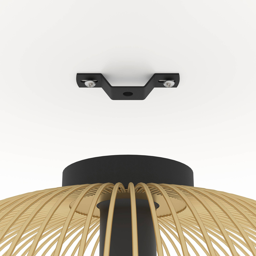 Add a touch of magic to your home with the EGLO Venezuela Gold/Black Ceiling Light. This art deco-inspired design features a graceful, gold wire lampshade that casts mesmerizing light and shadow. Its sleek, modern form complements contemporary spaces, bringing sophistication to kitchens, living rooms, bedrooms, and hallways. The radiant gold lampshade is beautifully contrasted by a round black metal base, creating an elegant blend of materials. A single E27 bulb (not included) completes the look.