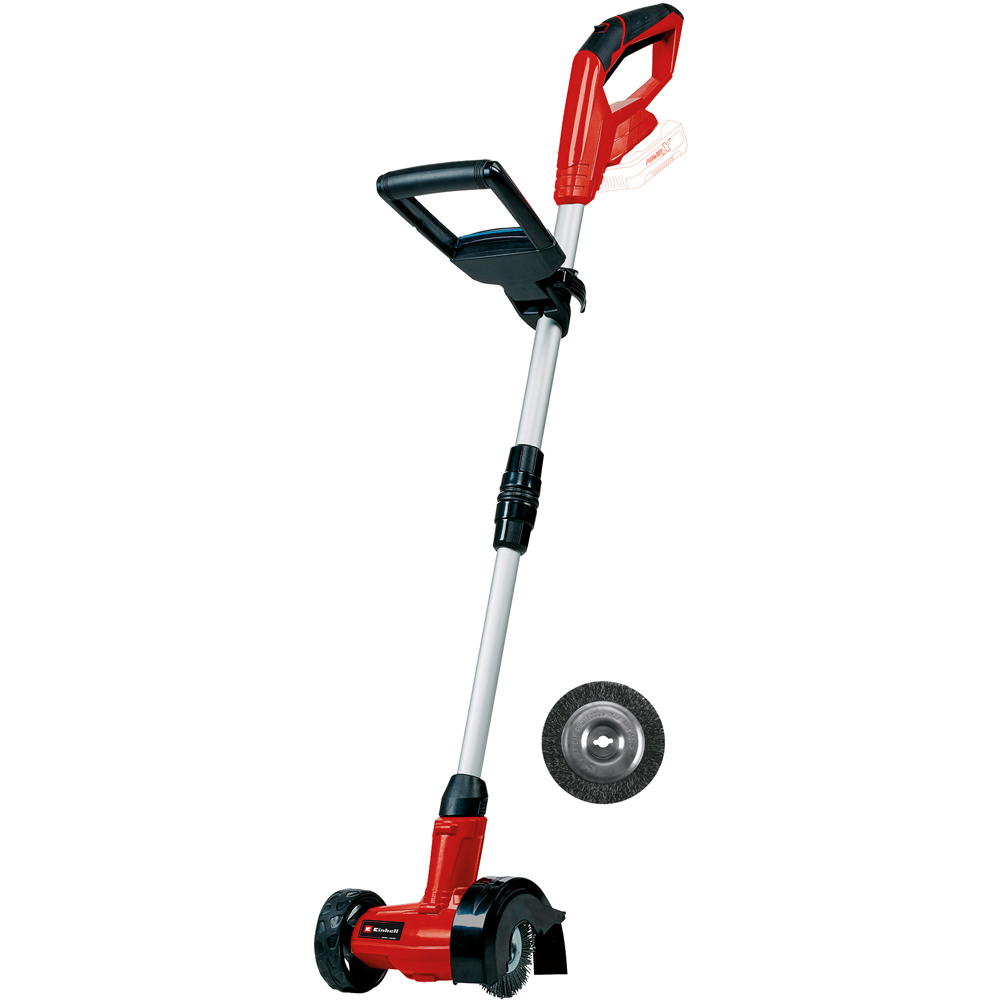 Revitalise your paving and restore its pristine condition with the Einhell GC-CC 18 Li Solo cordless paving scraper. This practical Power X-Change system tool is perfect for enhancing the look of your garden and extending the lifespan of hard surfaces. Featuring replaceable nylon and steel brushes (both included), this paving scraper boasts an infinitely adjustable telescopic handle for comfortable, upright operation. A second, infinitely adjustable handle further refines control and precision cleaning. The ergonomic Soft grip handle ensures comfortable use. Compatible with all Power X-Change series batteries. Battery and charger sold separately.