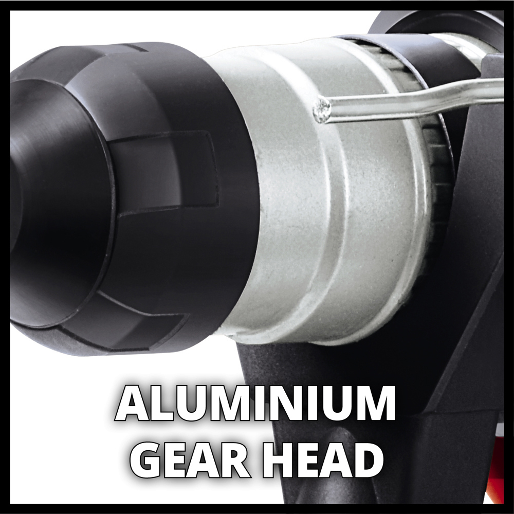 Conquer home construction projects with the Einhell TC-RH 900 rotary hammer. This versatile tool offers drilling, impact drilling, and chiselling with lock, all in one. Large soft grip surfaces provide comfort during extended use, while the powerful 900-watt pneumatic impact mechanism delivers up to 4,000 impacts per minute. The additional handle, featuring practical ribs for a secure grip, enhances control. Precision is ensured by the infinitely adjustable, solid metal drilling depth stop, and an overload safety stop protects the user. Built to last, it features a robust SDS-plus tool chuck and a durable aluminium gear head. Conveniently stored and transported in its practical carry case.