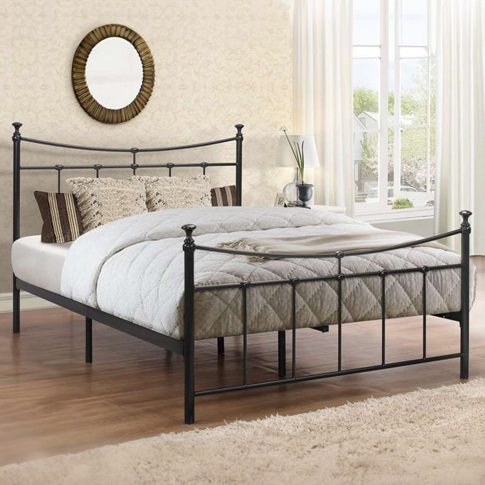 Embrace timeless elegance with the Emily bed frame. Its charming traditional style features beautifully curved rails and delicately designed finials. Crafted from steel with a durable epoxy powder-coated finish in classic black, this small double frame offers both style and resilience. The sprung slatted base provides natural bounce and adapts to pressure points for enhanced comfort. Supporting a maximum weight of 250kg, this frame is perfect for a UK standard-size mattress.