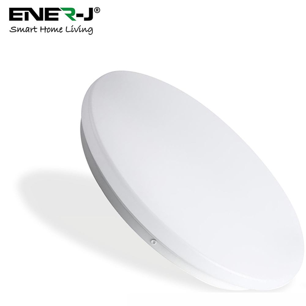 Illuminate your home with the ENER-J 12W LED Ceiling Light, a stylish and functional addition to any room. This colour-changing light offers three selectable colour temperatures: a warm 2700K, a cool 4000K, and a bright 6000K daylight setting, easily cycled through with a double press of the switch. The light remembers your last selection for effortless convenience. Featuring advanced microwave sensor technology, this energy-efficient light boasts significant cost savings—up to 90% on running costs—while delivering impressive 960 lumens of brightness. A built-in PIR motion detector automatically turns the light on and off, ideal for hallways, dark spaces, or areas with inconveniently located switches. Offering a 160-degree beam angle and long-lasting SMD LED, this IP44-rated light is perfect for indoor zones one, two, and three, including kitchens, halls, living rooms, bedrooms, dining rooms, and games rooms. Select from Night Mode (movement detection only in low light) or Daylight Mode (constant movement detection). Dimensions: 300 x 55mm.
