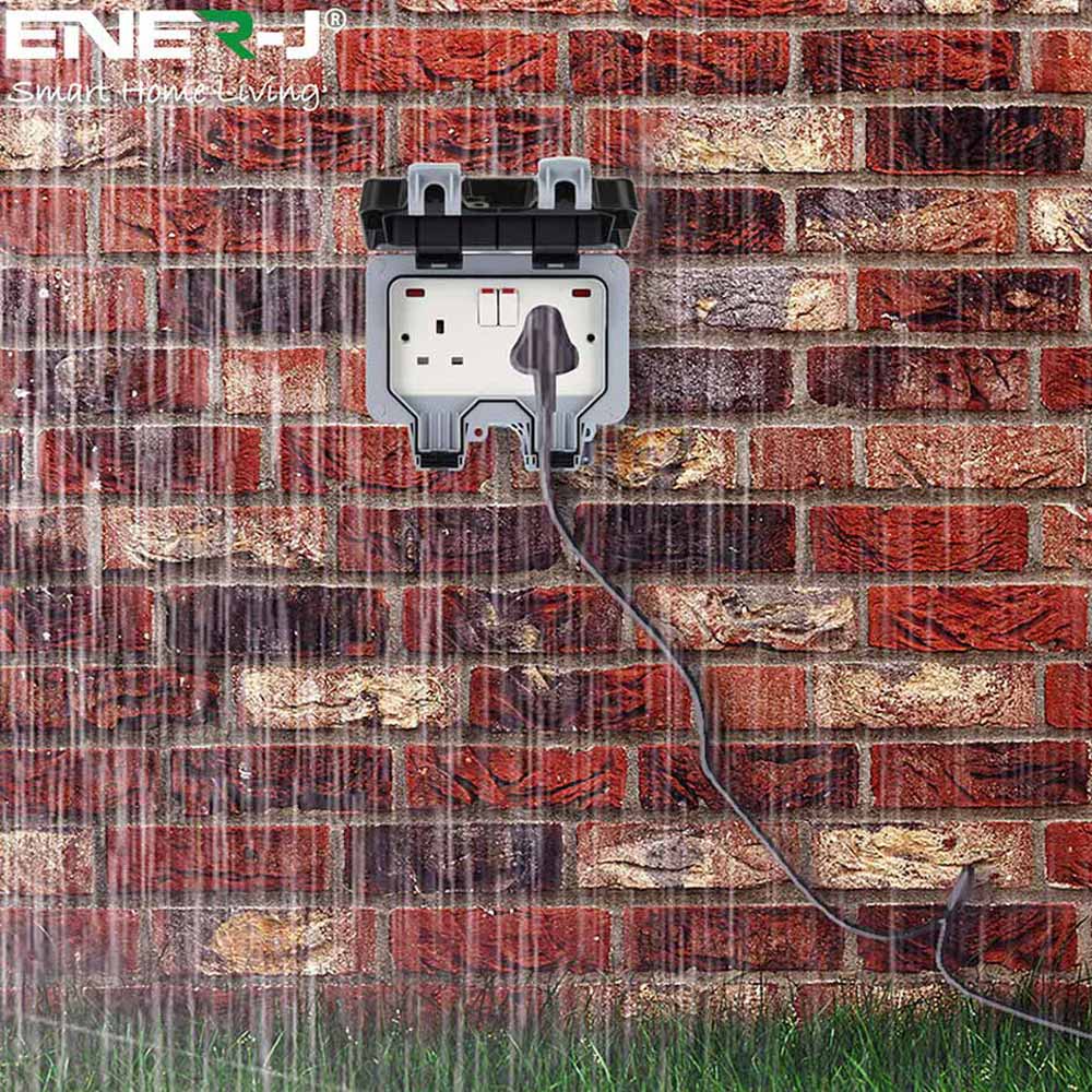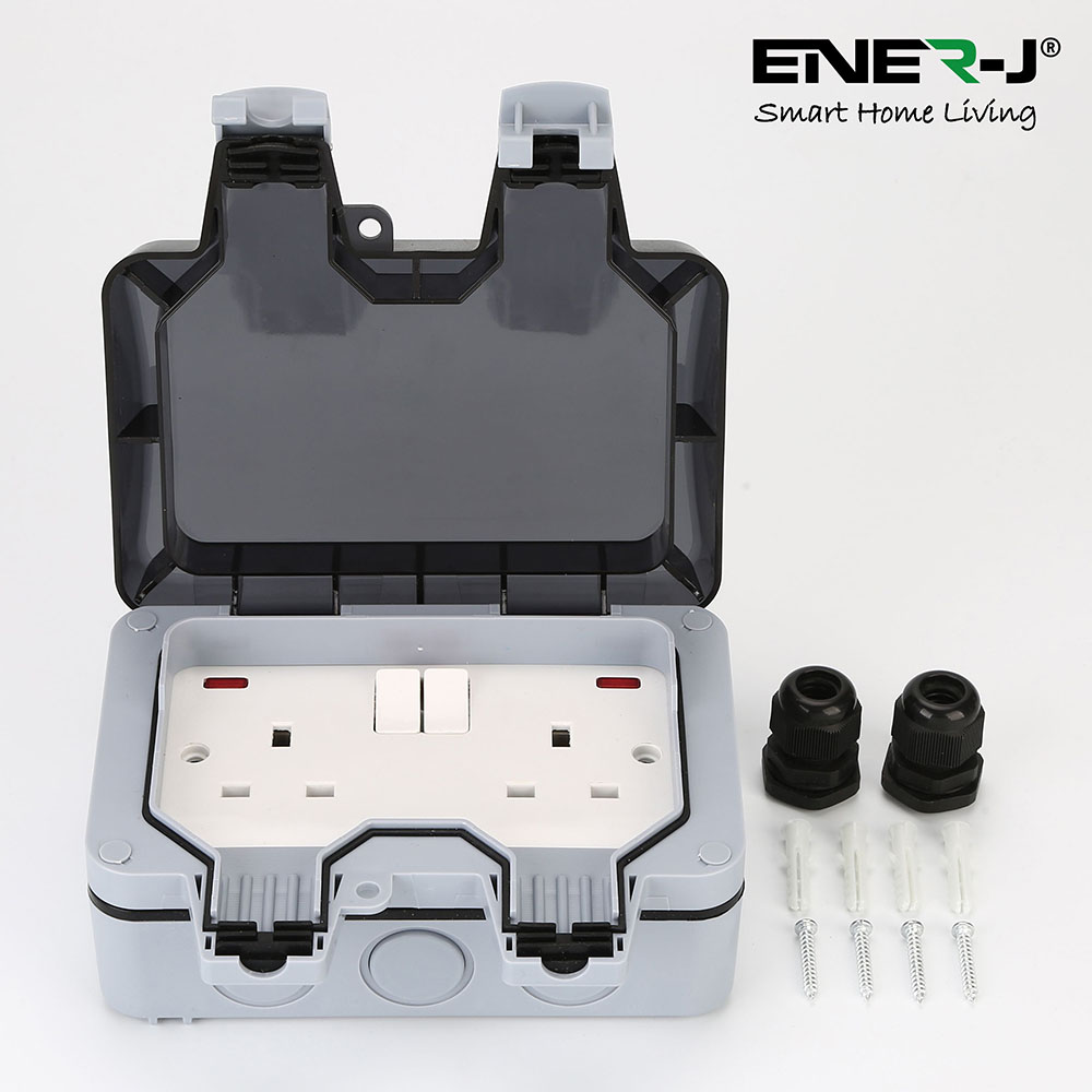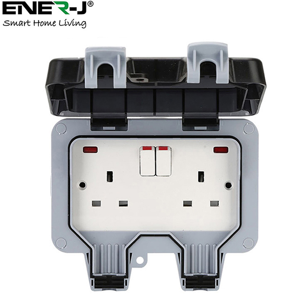 ENER-J 2 Gang 13A Twin BS Sockets with Switch