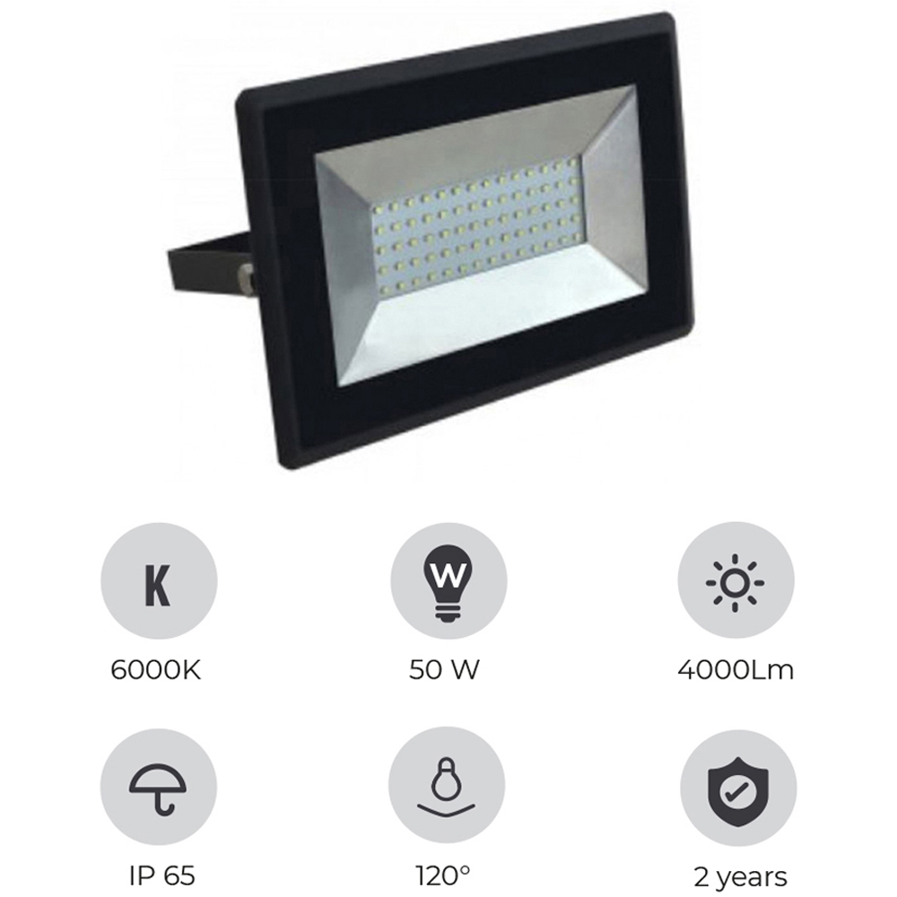 Upgrade your outdoor lighting with this pair of powerful 50W LED floodlights. Boasting a sleek, slim profile and innovative high-voltage LED chips, these lights deliver a brilliant 4000 lumens of daylight (6000K) illumination. Perfect for both indoor and outdoor use, their robust construction, featuring a high-grade aluminium body and toughened glass lens, ensures lasting performance. Choose from Daylight (6000K), Cool White (4000K), or Warm White (3000K) to set the perfect ambience. These energy-efficient floodlights offer exceptional performance with a high colour rendering index (Ra>70), excellent power factor (P.F.>0.9), and low total harmonic distortion (THD<20%). Simple to install with an included mounting bracket and 50cm cable, they offer instant on/off functionality, making them ideal for use with PIR sensors. Enjoy a remarkable 30,000-hour lifespan and peace of mind with a 2-year warranty and CE EMC approval.