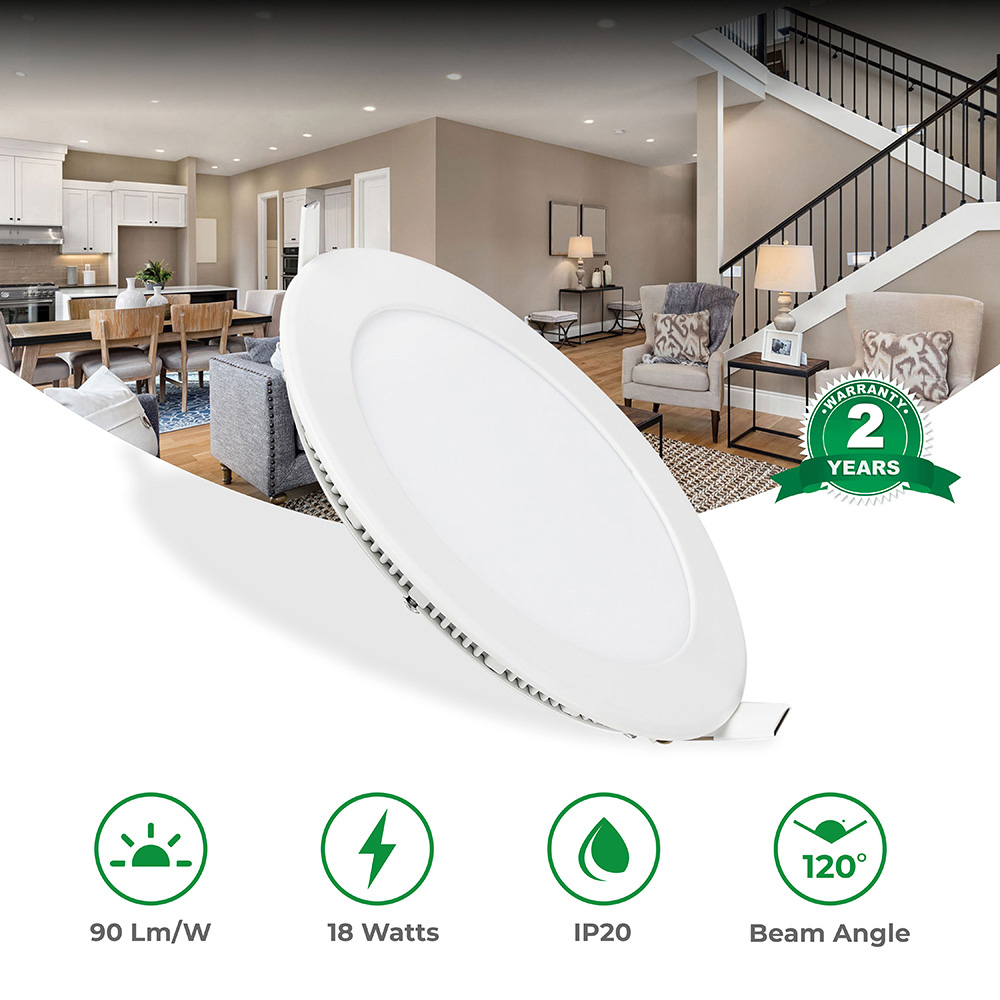 Upgrade your lighting with these ultra-slim recessed LED panels. Designed for seamless ceiling integration, installation is quick and straightforward. Boasting a high lumen output of 90Lm/W and a wide 120-degree beam angle, these energy-efficient lights deliver bright, even illumination. Enjoy a remarkably long lifespan of 20,000 hours, minimising replacements and saving you money – with degradation less than 0.1% per 1000 hours. A truly efficient and lasting lighting solution for any space.