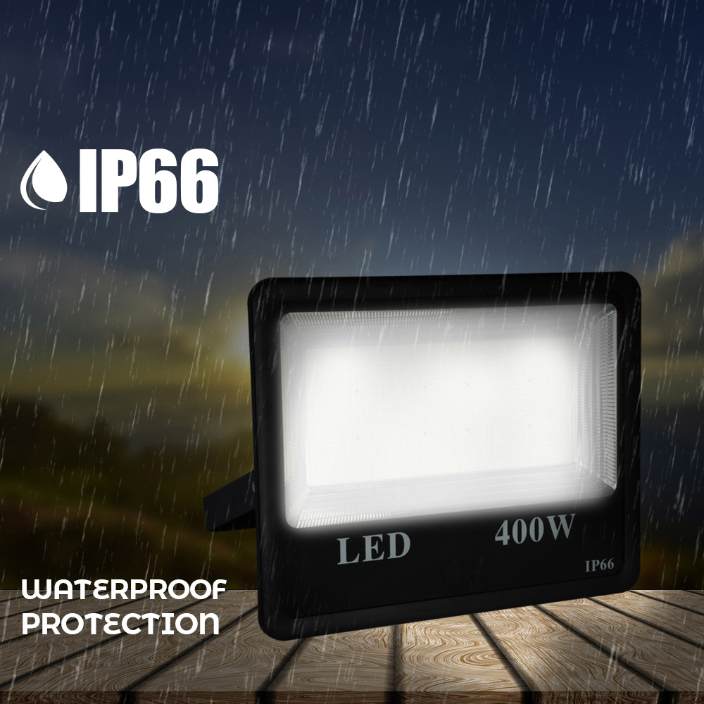 Power up your outdoor areas with the ENER-J 400W LED Floodlight. Its robust 450 x 330 x 42mm design delivers a dazzling 30,000 lumens of 6500K daylight, matching the output of a 1500W halogen while significantly reducing energy consumption. The advanced Epistar SMD LED chips offer instant illumination, perfect for security lighting or general outdoor use. Rated IP65 for weather resistance and boasting wide voltage compatibility, this floodlight is a reliable choice for garages, patios, gardens, and more. Enjoy years of dependable performance, backed by a 2-year warranty.