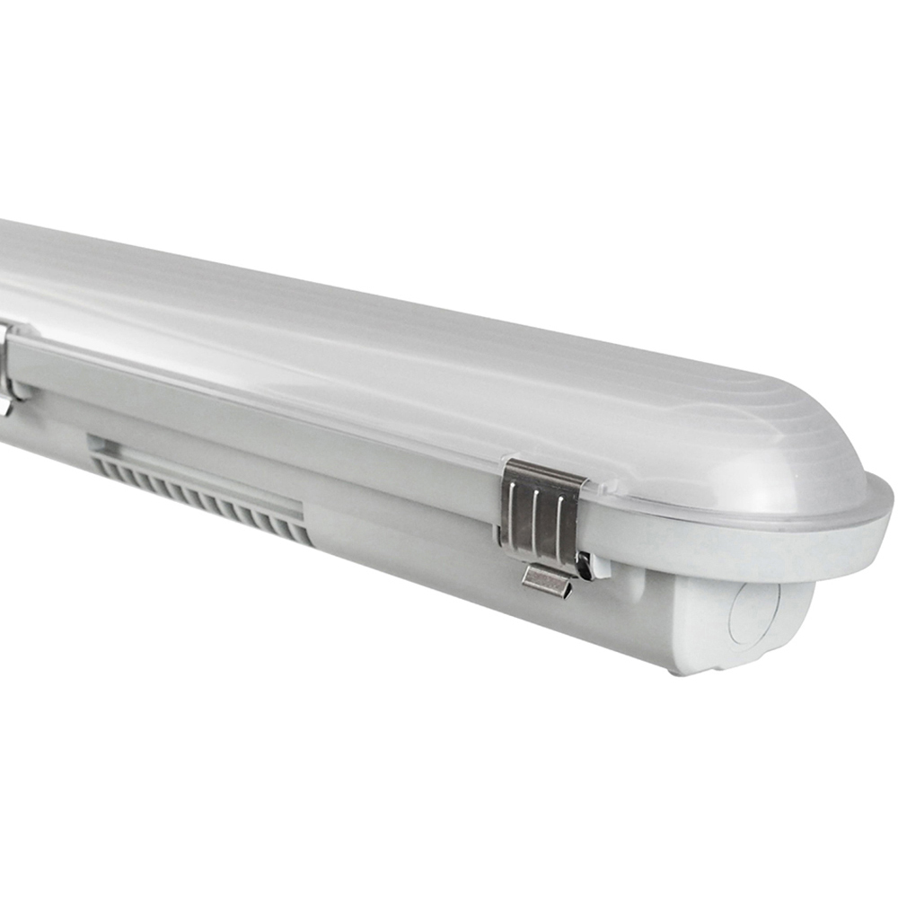 Illuminate your outdoor areas with this powerful 40W LED batten light. Boasting a robust 120cm length, it delivers a brilliant 4800 lumens of 6000K light, perfect for illuminating larger spaces such as parking lots, garages, or industrial settings. Its IP65 rating ensures complete protection against water and dust, guaranteeing reliable performance in demanding outdoor environments. Enjoy significant energy savings and reduced maintenance with a lifespan of 20,000 hours and instant start-up.