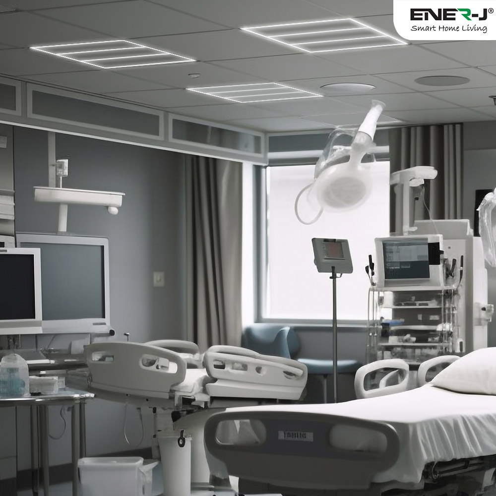 The ENER-J LED Grid Edge Ceiling Panel Light delivers 4000 lumens of bright, 6000K light from its 40W integrated LEDs. Its innovative foldable, check grid design seamlessly integrates into existing 600 x 600mm or 595 x 595mm ceiling grids. Ideal for offices, retail spaces, and hospitality settings, this energy-efficient panel light offers high CRI, a high-transmittance cover, and a robust DC connector with a good soldering connection. Dimensions: 60 x 60cm. Two-year warranty.
