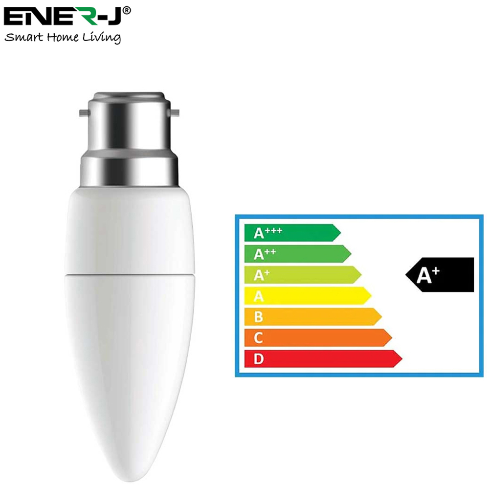 Enjoy the calming glow of the Ener-J 4W LED B22 6000K Candle Lamp. Switching from a 35W incandescent bulb to this energy-saving LED option will slash your lighting costs by 88%. Designed to fit seamlessly into your B22 bayonet lamp holder, it creates a relaxing atmosphere in any space.
