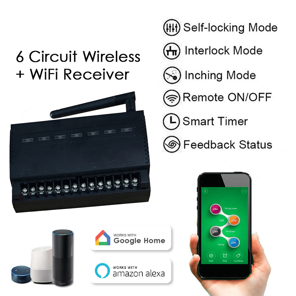 With its secure, encrypted wireless signal, the switch operates reliably up to 30 metres indoors and 100 metres outdoors. The non-dimmable 6-circuit receiver pairs effortlessly with the 6 Gang Wireless Switch via RF for straightforward control. For remote access, simply connect the receiver to your Wi-Fi network and download the app. Control your lights from anywhere, or use voice commands via Alexa, Google Home, Siri, or even your Apple Watch.
