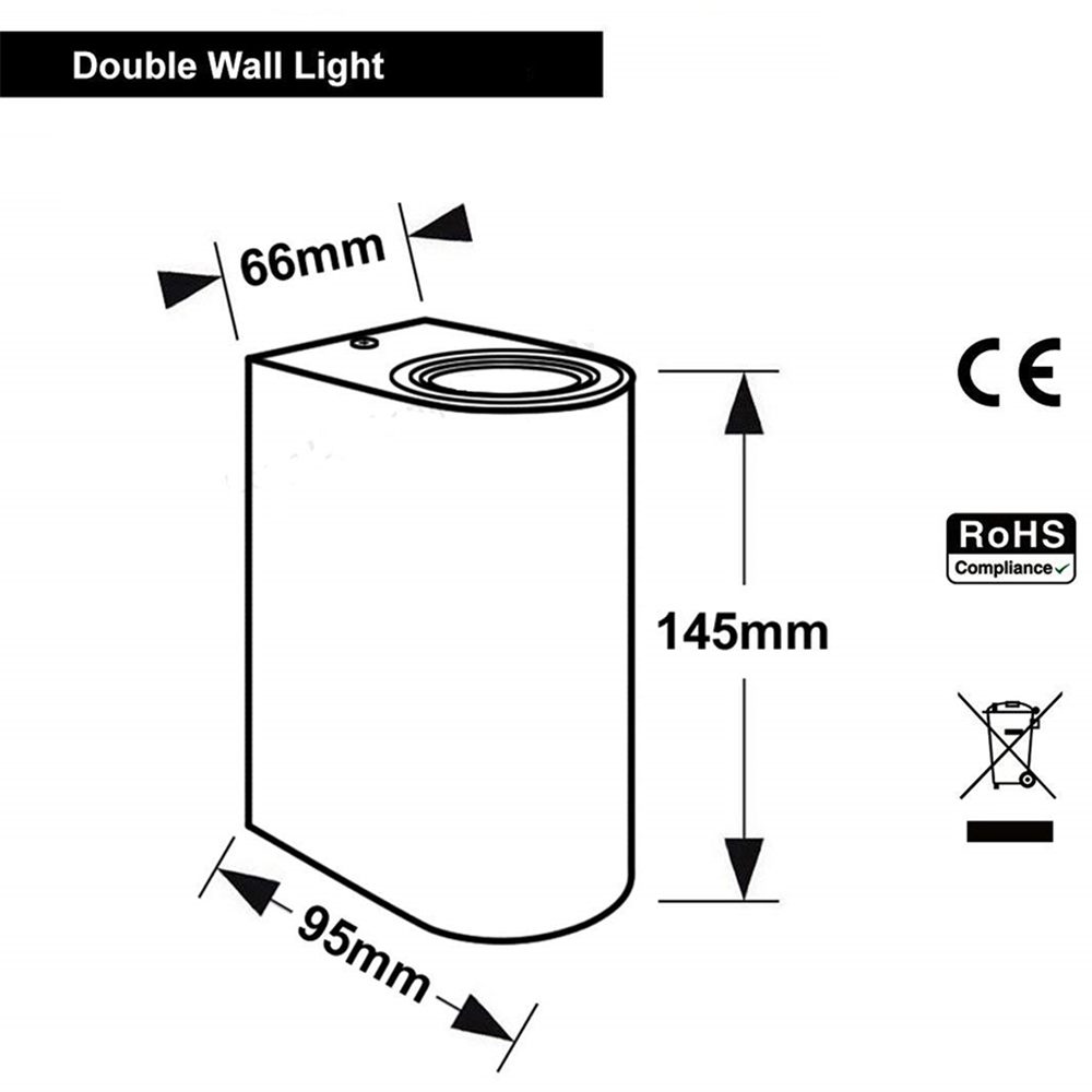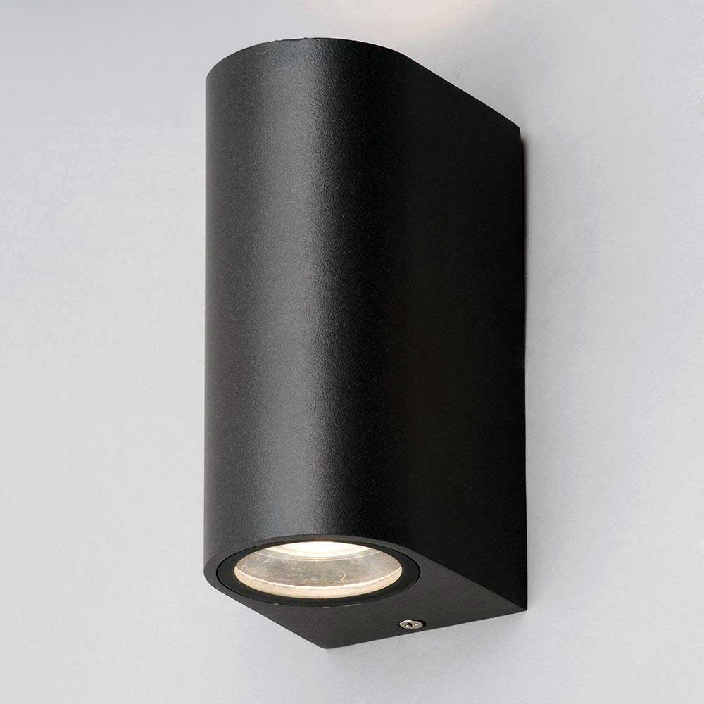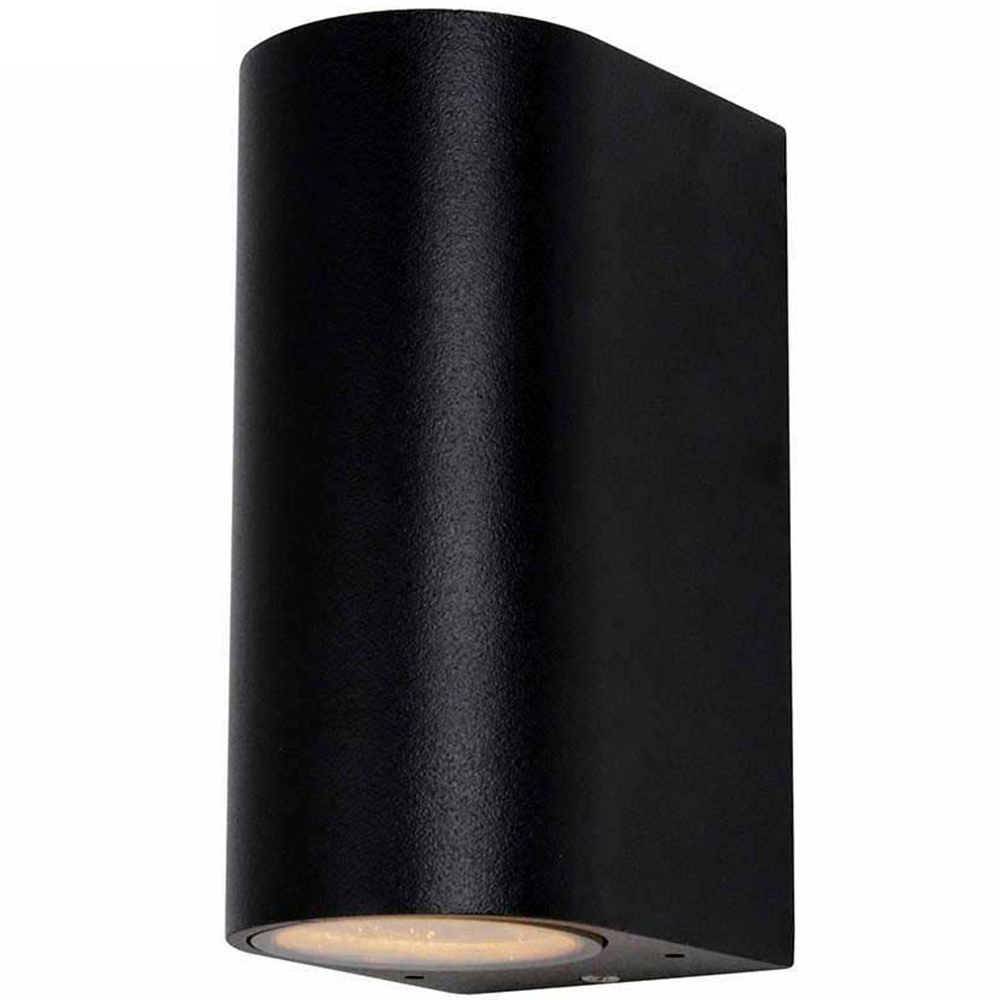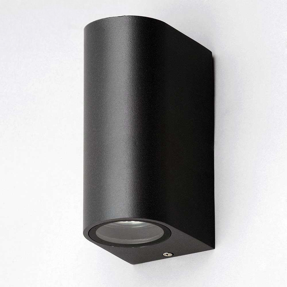 Enhance your outdoor spaces with the Modern Black Double Outdoor Wall Light. Its sleek design makes it a stylish addition to any building, inside or out. This robust wall light features dual up-down illumination, creating a dramatic lighting effect on walls and facades. The GU10 fitting offers versatility, accommodating both halogen bulbs and energy-efficient GU10 LEDs (up to 35W per bulb, with two bulbs in total). Built from durable materials to withstand the elements, this CE-approved light provides both safety and long-lasting performance. A perfect choice for adding a touch of contemporary elegance to your home.