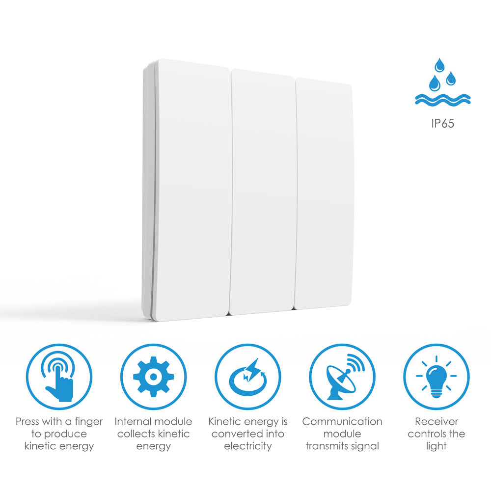 ENER-J ECO 3 Gang Wireless White Kinetic Switch and 3 500W RF Wi-Fi Receiver Kit