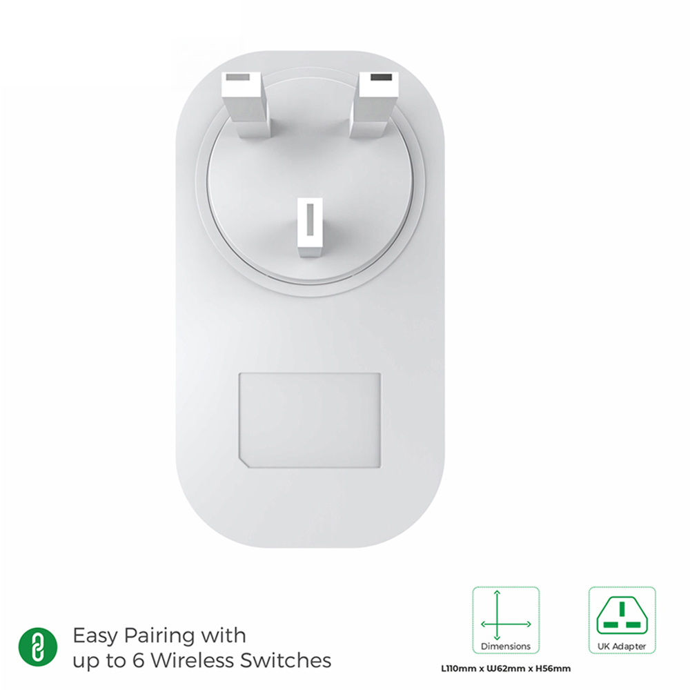 Effortlessly control your home appliances with the ENER-J Eco Series White 13A Wireless Plug and 1Gang Switch. This high-efficiency socket adaptor boasts exceptional stability and durability, thanks to its robust 13A relay and integrated in-rush current suppression. Simply pair it with a compatible wireless kinetic energy switch (sold separately) for convenient wireless operation. Enjoy versatile control with the ability to pair up to ten switches. Designed for UK homes and meeting BS safety standards, this adaptor offers a reliable and safe solution for modern living.