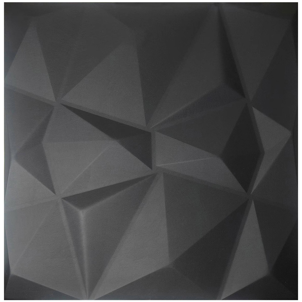 ENER-J Elegant 3D Diamond Embossed Black PU Leather Wall Panel