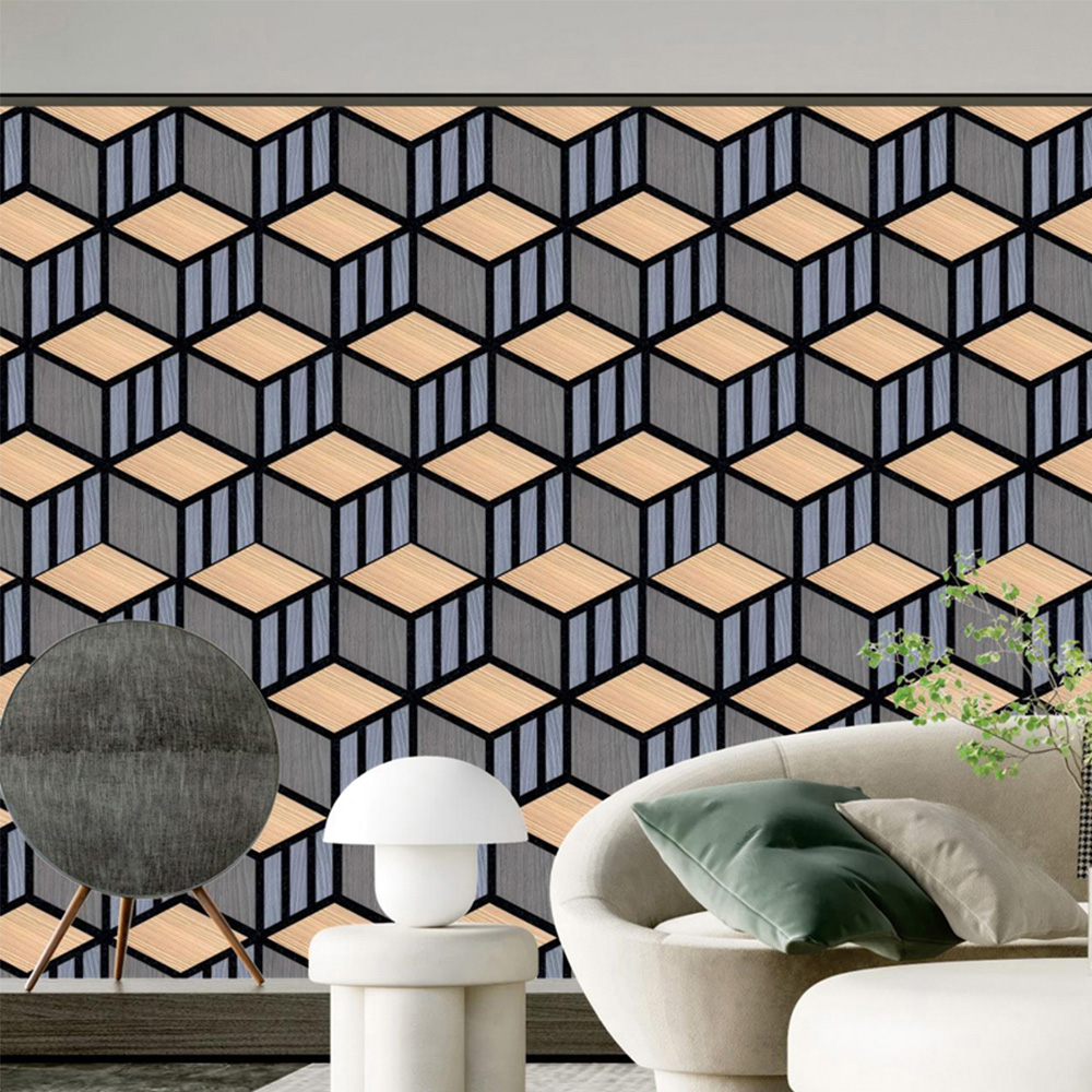 ENER-J Hexacube Natural Wood and Grey PET and MDF Acoustic Wall Panel