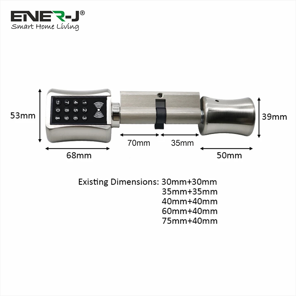 Ener-J Silver Smart Adjustable Cylinder Doorlock
