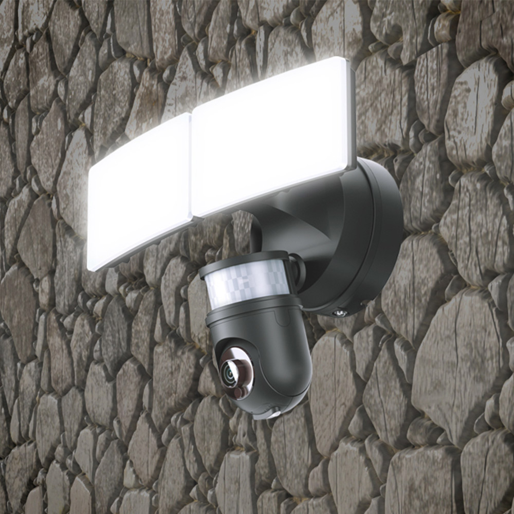 With the Ener-J Smart Black Floodlight Camera, enjoy peace of mind knowing your property is protected. Triggered motion instantly activates powerful floodlights and a loud siren, deterring unwanted activity. The 2-way audio feature lets you communicate with visitors or scare off intruders. Receive timely notifications to your smartphone via the smart app. Easy to install, this all-weather camera connects to existing or new wiring. A microSD card slot (up to 128GB, card not included) ensures you never miss a moment.