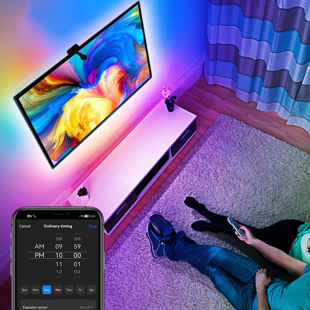 Transform your viewing experience with the Ener-J Smart TV RGBIC Strip Kit. This 3.8m kit, comprising four sections, effortlessly enhances 55-65 inch screens. The included 1080p intelligent camera, utilising Envisual technology, captures on-screen colours and dynamically applies them to your TV',s backlights. Enjoy the versatility of RGBIC technology, displaying multiple colours simultaneously across individually customisable segments. Simple installation is achieved using the supplied adhesives and clips, attach the camera to the top or bottom centre of your TV for optimal performance. Create the perfect ambience for any movie night or gaming session.