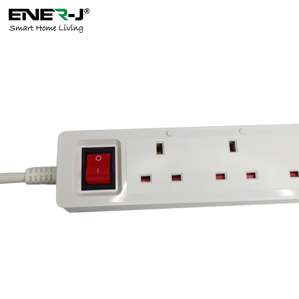 The Ener-J White Smart Power Extension offers seamless power management for your home. Control your devices with Alexa and Google Home voice commands, or remotely via the Ener-J Smart App (no hub needed). Each of the three AC sockets and four USB ports can be managed individually, anytime, anywhere. Multiple safety features, including surge protection, over-current, overload, short-circuit, overheat, and anti-lightning protection, ensure peace of mind. A childproof design adds an extra layer of safety. Convenient scheduling lets you automate on/off times, with support for up to 20 timing task groups and shared access for up to 30 smartphones. This versatile power strip operates on 100-240V AC, measures 332 x 42 x 42mm, and weighs 583g.