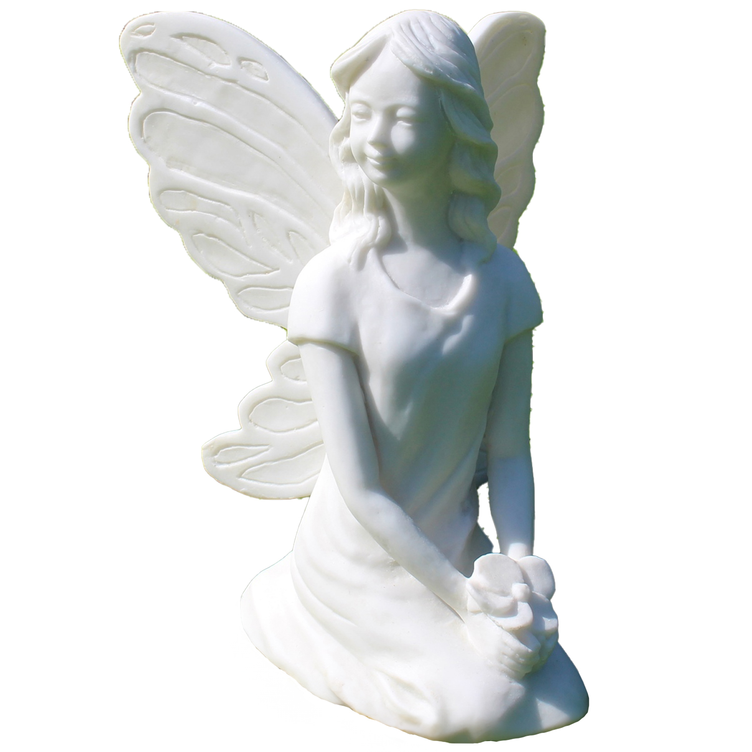 Enigma Fairy Holding Flowers White Marble and Resin Garden Ornament