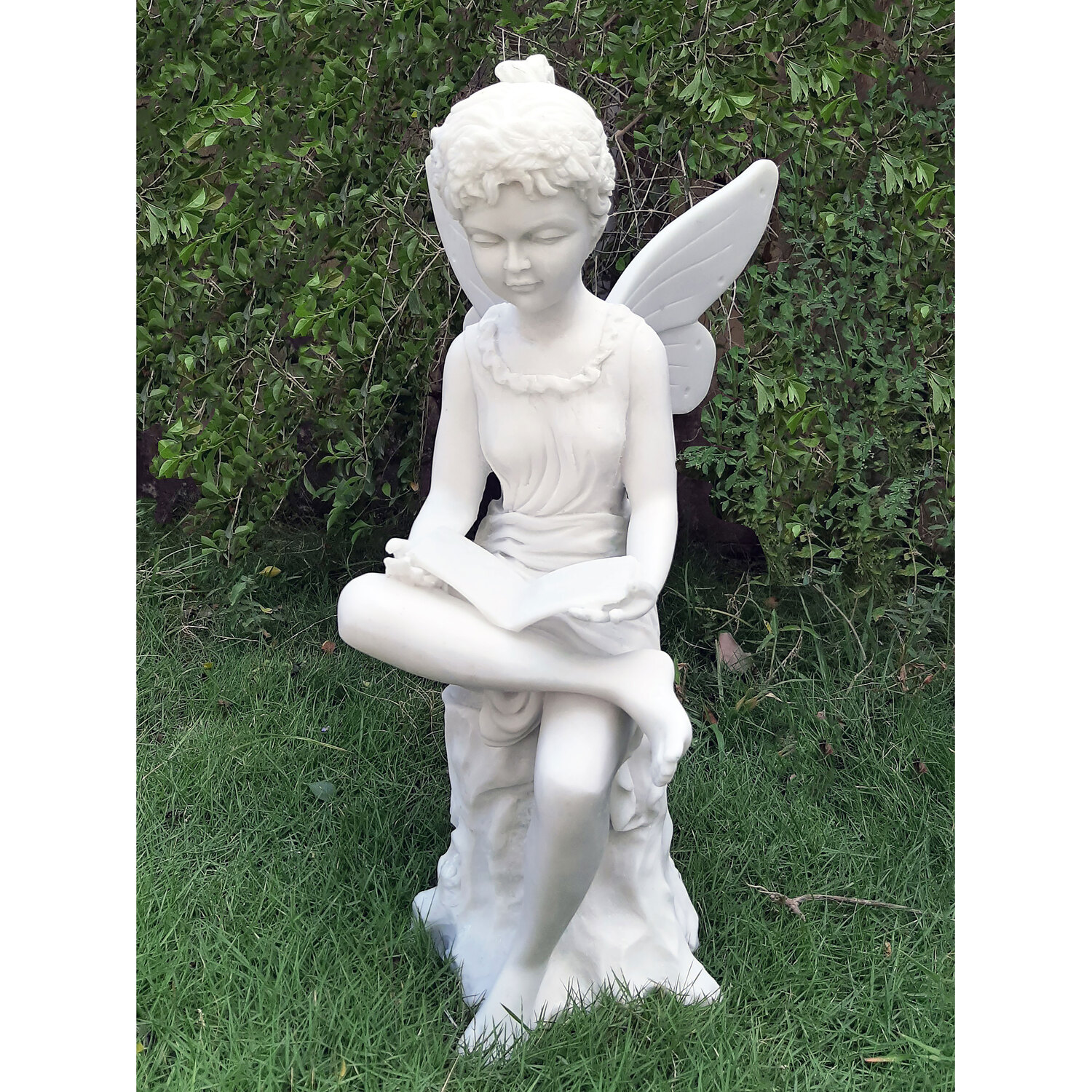Add enchantment to your garden with this charming Fairy Reading on a Log ornament. Perfect for patios, flowerbeds, or borders, this delightful statue depicts a fairy serenely seated on a log, engrossed in a book open on her knees. Her flowing dress, flower crown, and delicate wings are exquisitely detailed, creating a whimsical, fairytale aesthetic. Crafted from frost-resistant marble resin, this ornament offers the timeless beauty of ancient marble sculptures, ensuring it will grace your garden for years to come.