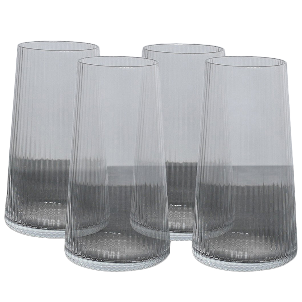 Enhance your dining experience with this attractive Set of 4 Enya Ribbed Hiballs. Their elegant design blends a vintage feel with contemporary style, thanks to a conical shape and unique ribbed detailing. Perfect for entertaining or everyday use, these glasses are an excellent choice for parties and events, making them ideal for your favourite drink at your next party.