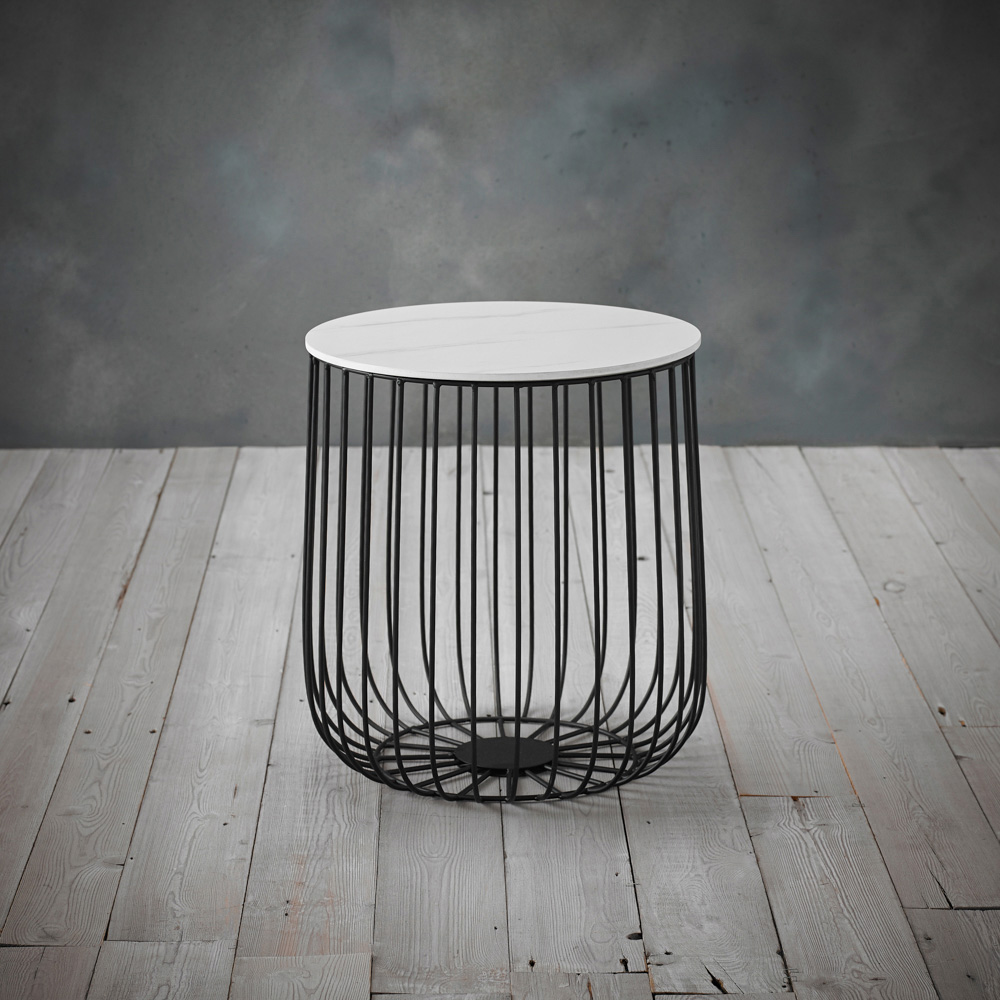 Introduce a touch of sophistication to your home with the Enzo Cage Table, where practicality meets modern design. The black frame provides a striking contrast to the chic marble-effect top, creating an elegant focal point for any living space. More than just a table, its removable top unveils a clever storage solution, offering both style and functionality. Ideal as a coffee table or a stylish lamp table, the Enzo Cage Table’s contemporary aesthetic is sure to enhance your decor.