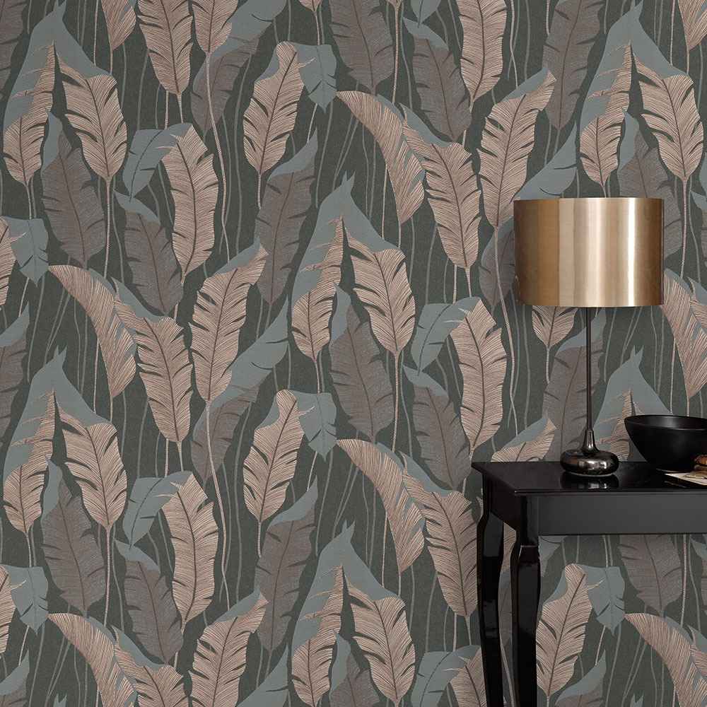 The Erismann Arwen Leaf Grey and Copper PVC-free Wallpaper brings sophisticated style to your interior. This beautiful wallpaper, from the four Earth collection, features an eye-catching leaf design with metallic accents. Made with water-based inks, it's an environmentally friendly choice. Easy to install, this paste-the-wall vinyl wallpaper offers a luxurious finish and effortlessly elevates any space.