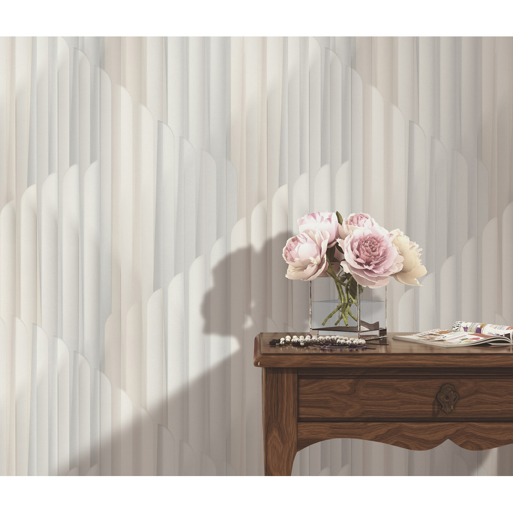 Introduce a touch of modern elegance to your home with the Cascade design. This paste the wall vinyl wallpaper features gentle colour transitions and elegant wave structures, creating a timeless atmosphere in any room. The subtle lustre and highlights of silver, soft grey, and taupe add depth and radiate a magical elegance. Designed for ease, this high-quality wallpaper can be applied directly to the wall, removing the need for a pasting table.