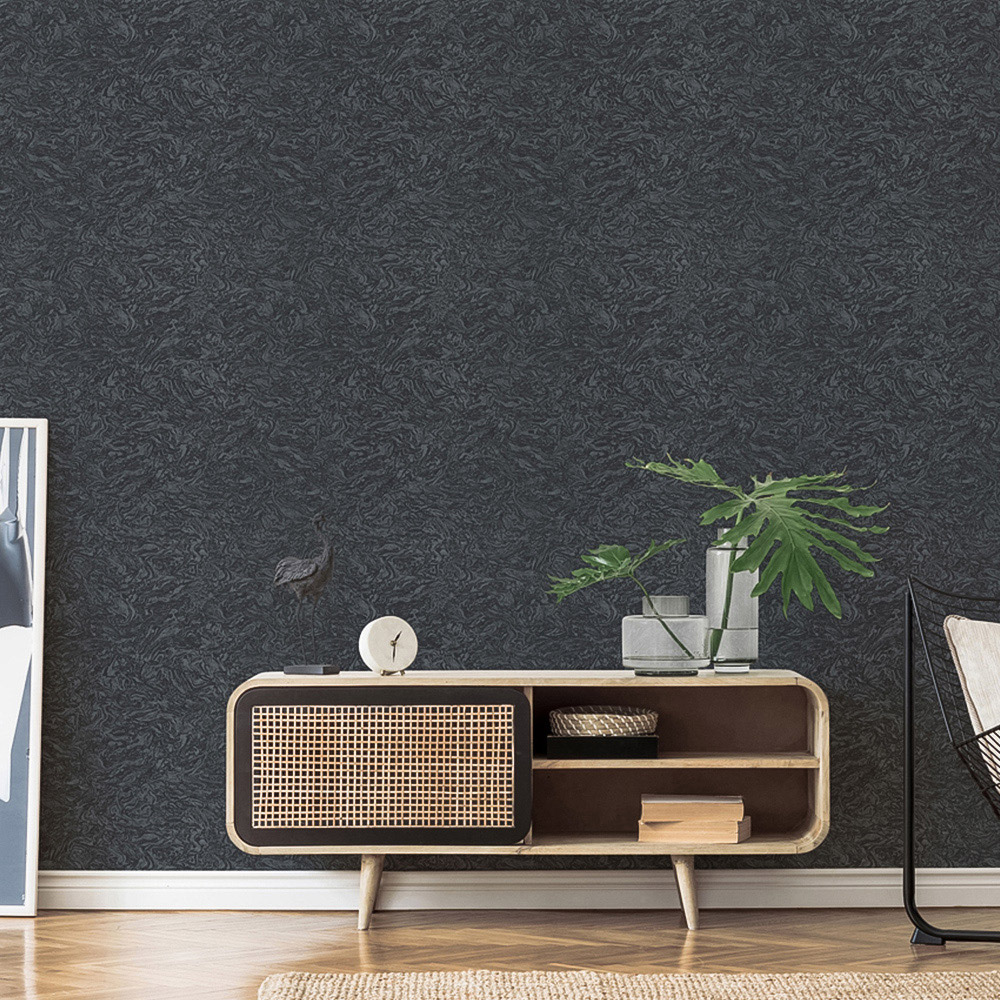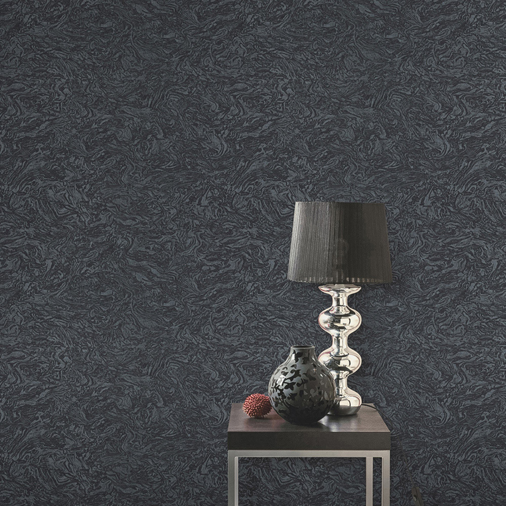 Elevate your interior with the Erismann Flowing Marble Black Wallpaper. Its organic pattern mimics the natural beauty of stone and marble, highlighted by a sophisticated matte-gloss contrast. This vinyl wallpaper, with its non-woven backing, offers a discreet yet lively aesthetic, ideal for contemporary wall design.