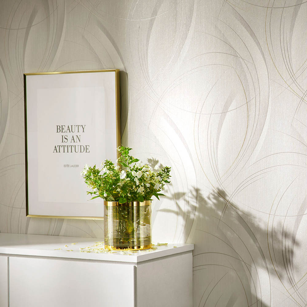 The Erismann Gentle Swirl Designer White Wallpaper brings understated glamour to your home with its elegant, modern swirl design. Curvaceous shapes and subtle metallic highlights on a softly textured, neutral background create a luxurious feel. This high-quality vinyl wallpaper is durable and lightfast, offering easy paste-the-wall application and clean removal.
