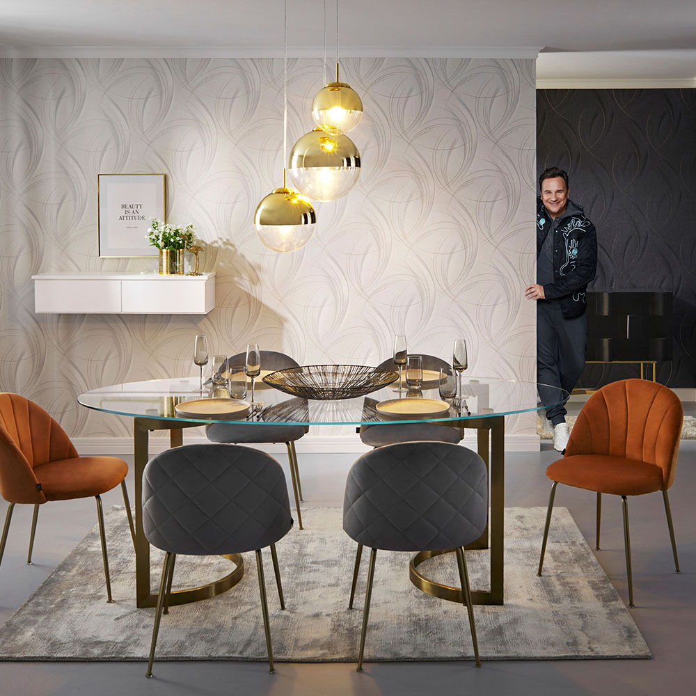 - Features modern swirl design that adds curvaceous shapes to interior