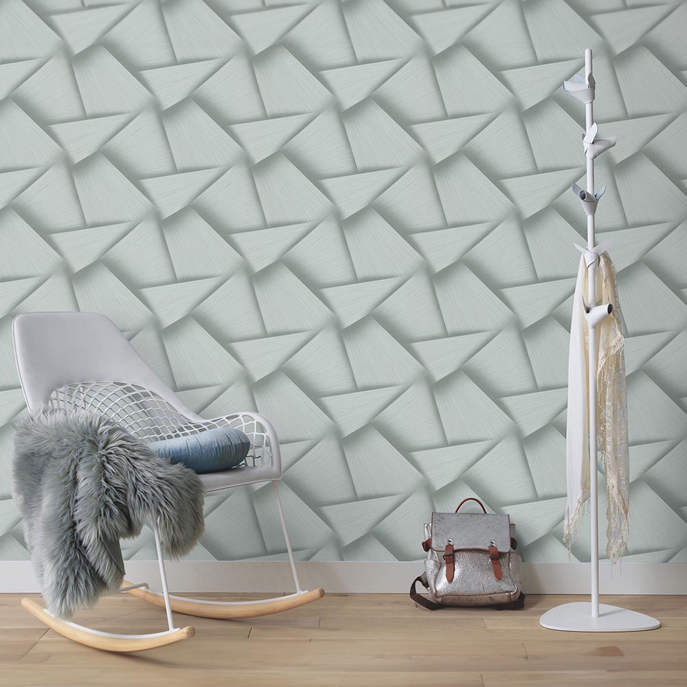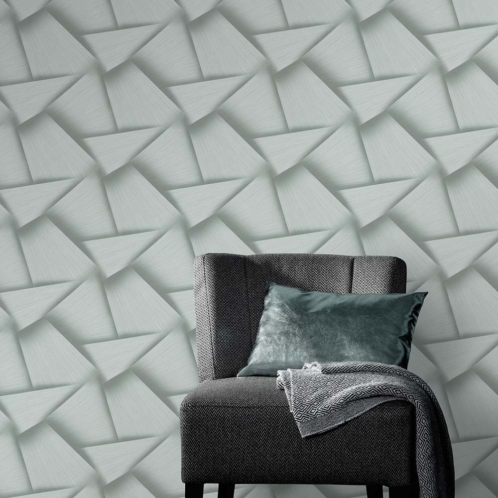 Transform your space with the Erismann Pose wallpaper. Its striking geometric pattern in green and grey, accented with sparkling metallic highlights, brings modern elegance to any room. This high-quality 3D vinyl wallpaper adds depth and dynamism, creating a sense of spaciousness. Enjoy effortless installation with its paste-the-wall application, achieving a sophisticated finish.