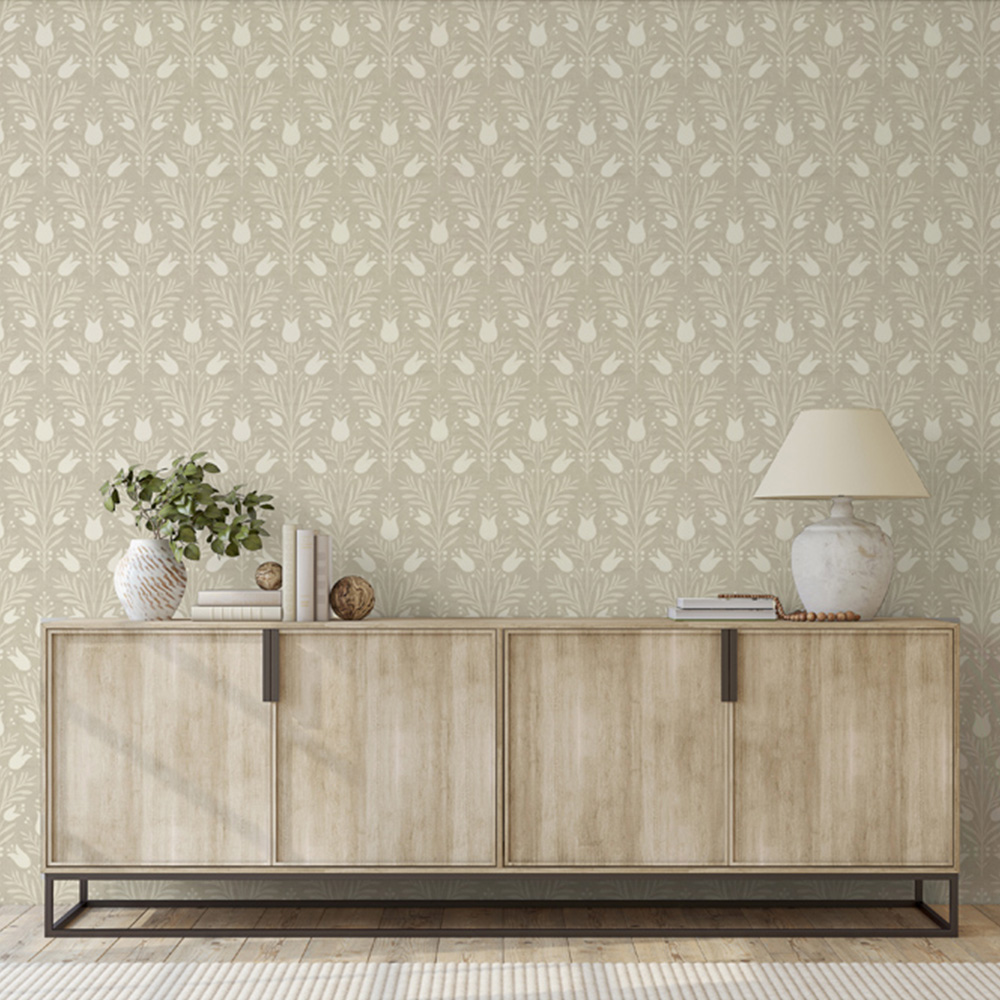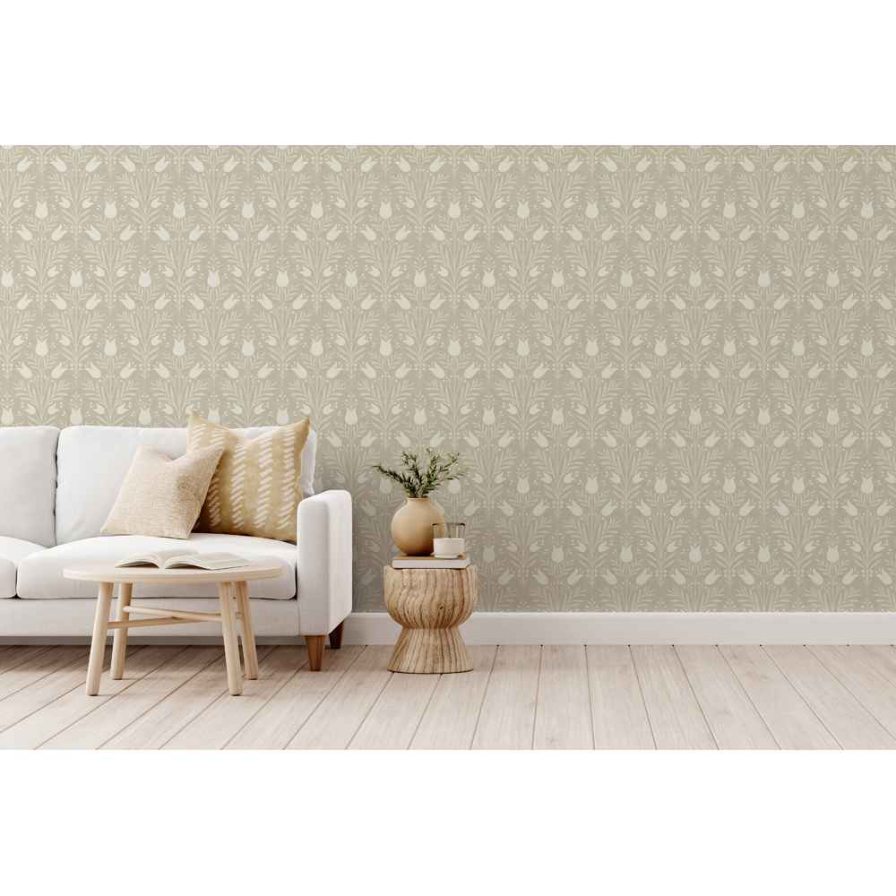 Transform your living space with the timeless charm of this Esselle Home Heritage Tulip Taupe Wallpaper. Influenced by the rich legacy of the arts and crafts movement, this wallpaper conjures a sense of timeless elegance and will add charm to any room. The textured finish adds a sense of warmth to the handcrafted design, and the taupe colourway creates a tranquil feel. Whether you envision a cosy reading nook or a grand formal dining room, this Heritage Tulip design provides the perfect backdrop.