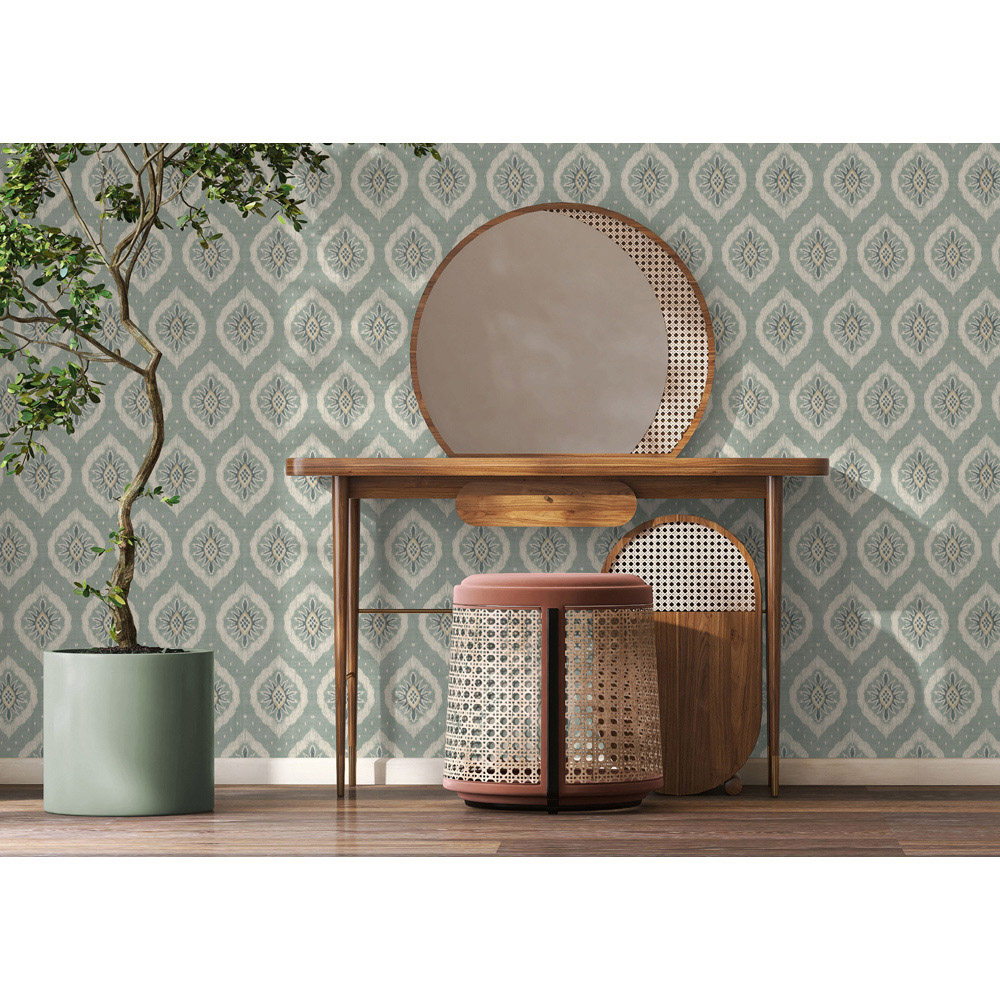 Step into the beautiful world of the Silk Road with this Esselle Home Odina Ikat Seafoam Wallpaper. With its diamond-inspired motifs and textured ikat threads, this wallpaper will certainly add character to any interior. Inspired by traditional resist dyeing techniques of rich historical textiles, tradition truly meets elegance in this design. A symphony of seafoam green with just a hint of ochre, this colourway is sure to create a calm haven within your home.