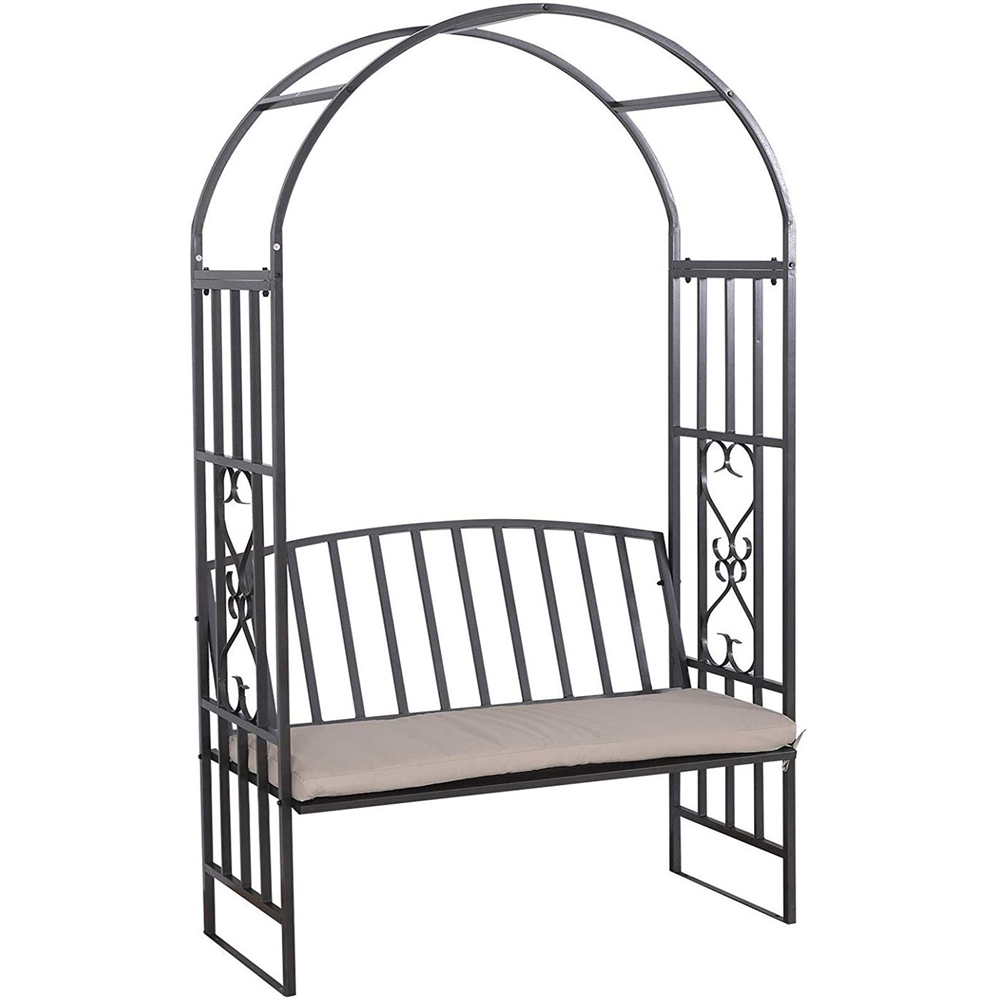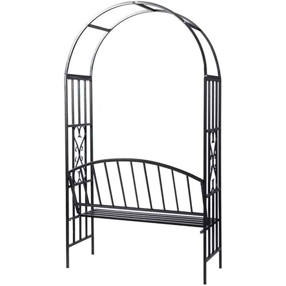 Eurotrade 3.7 x 6.9ft Metal Black Garden Arbour with Bench