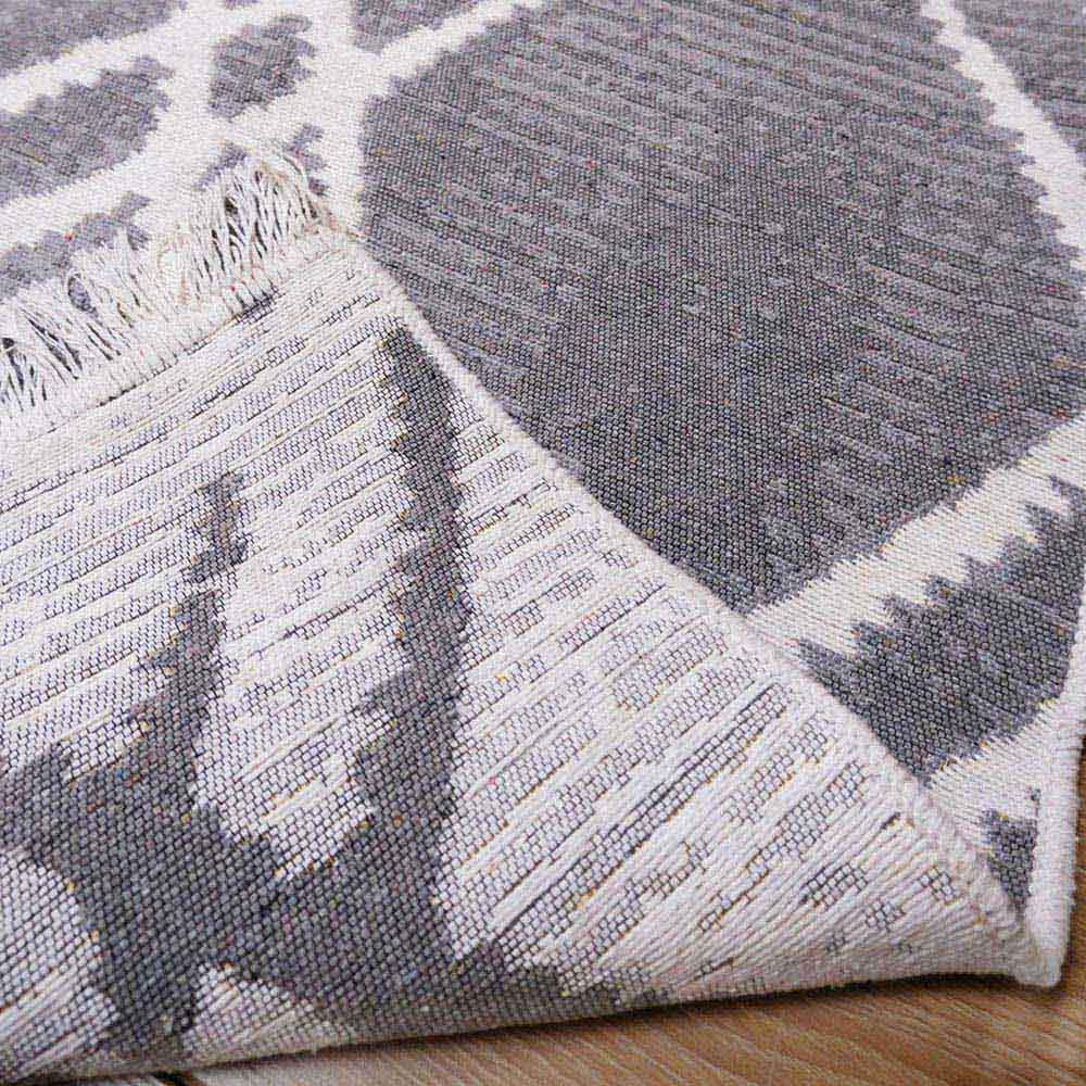 The Evu Anders Reversible Rug (160 x 230cm) adds warmth and style to any room. This soft, 100% cotton rug features a reversible design with geometric patterns and tassel fringes. Machine washable at 30°C for easy care.