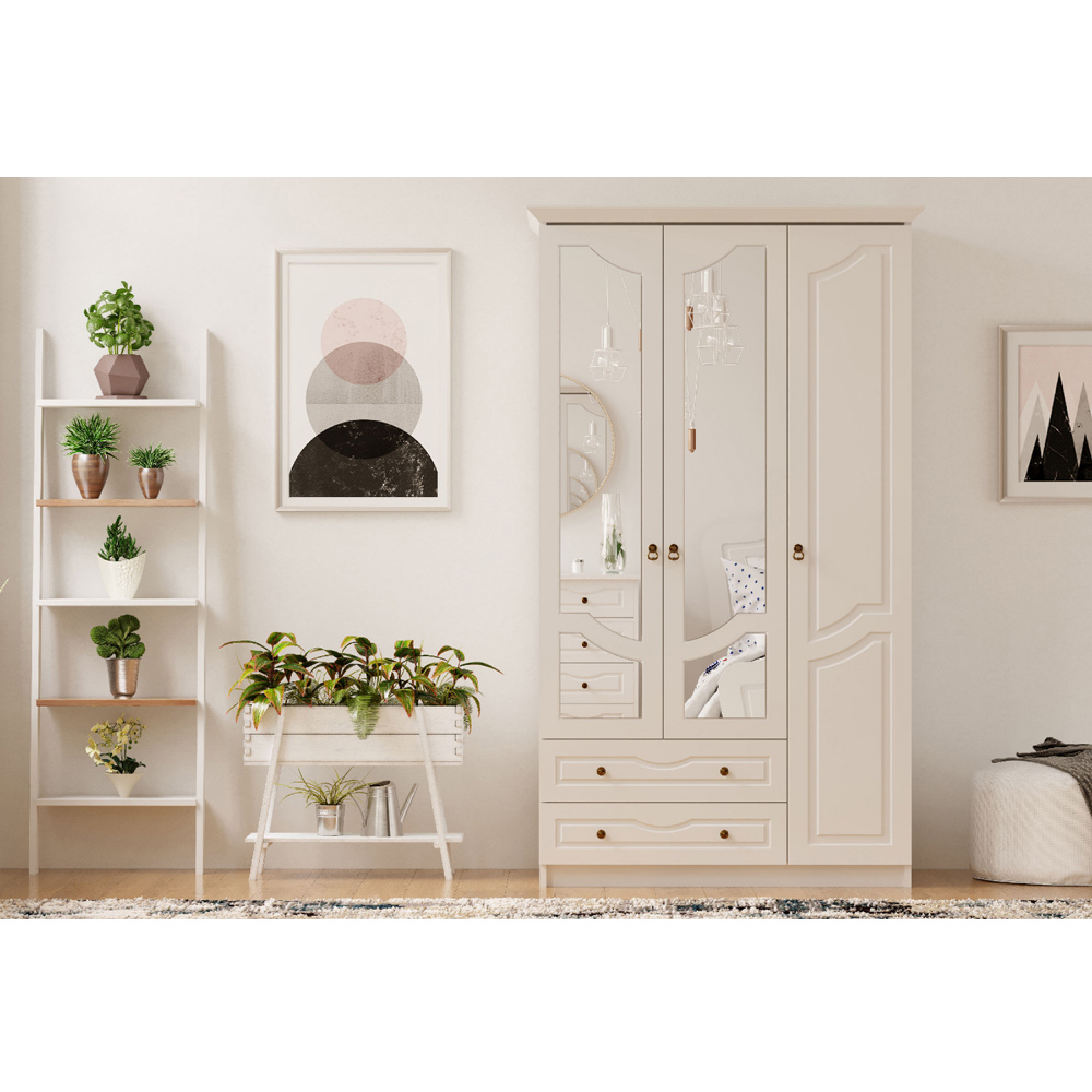 Evu CHLOE 3 Door 2 Drawer White Mirrored Wardrobe