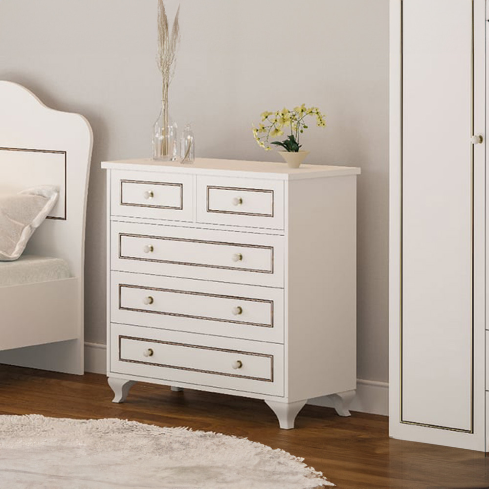 Evu CLEMENT 5 Drawer White Chest of Drawers