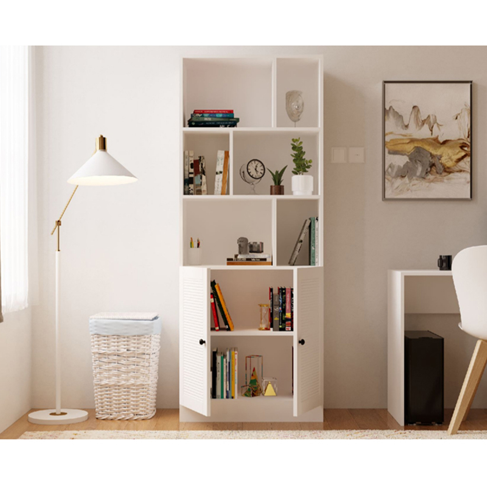 Add practicality and style to your space with the Evu Elise 2 Door 6 Shelf White Bookcase. Featuring two doors and six shelves, this unit offers ample storage and display space. Easy to use, the unit is delivered flat-packed and requires assembly. Also, its French-inspired design ensures it blends effortlessly with a range of interiors. Plus, solid and durable, the bookcase is finished with CNC techniques to make a reliable choice.