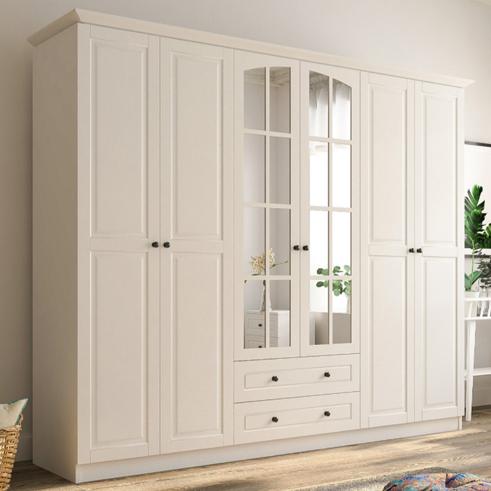 Evu MAISON 3 Door 2 Drawer White Mirror Wardrobe