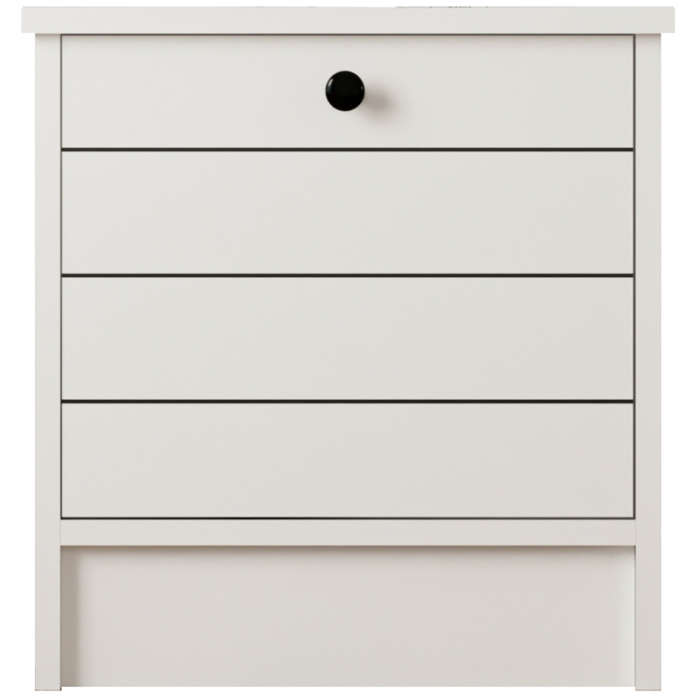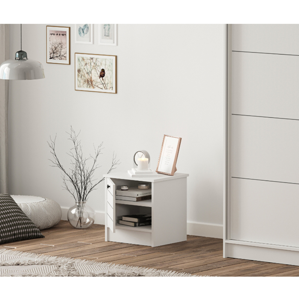 Enhance your bedroom's charm with the Evu SABRO Bedside Table. This stylish white bedside table boasts a smooth top, ideal for displaying cherished items or your alarm clock. Behind a single door, you'll find a convenient shelf for discreet storage. A sleek handle and sturdy base provide stability and support, complementing both contemporary and traditional décor. Assembly is required as this item is delivered flat-packed.