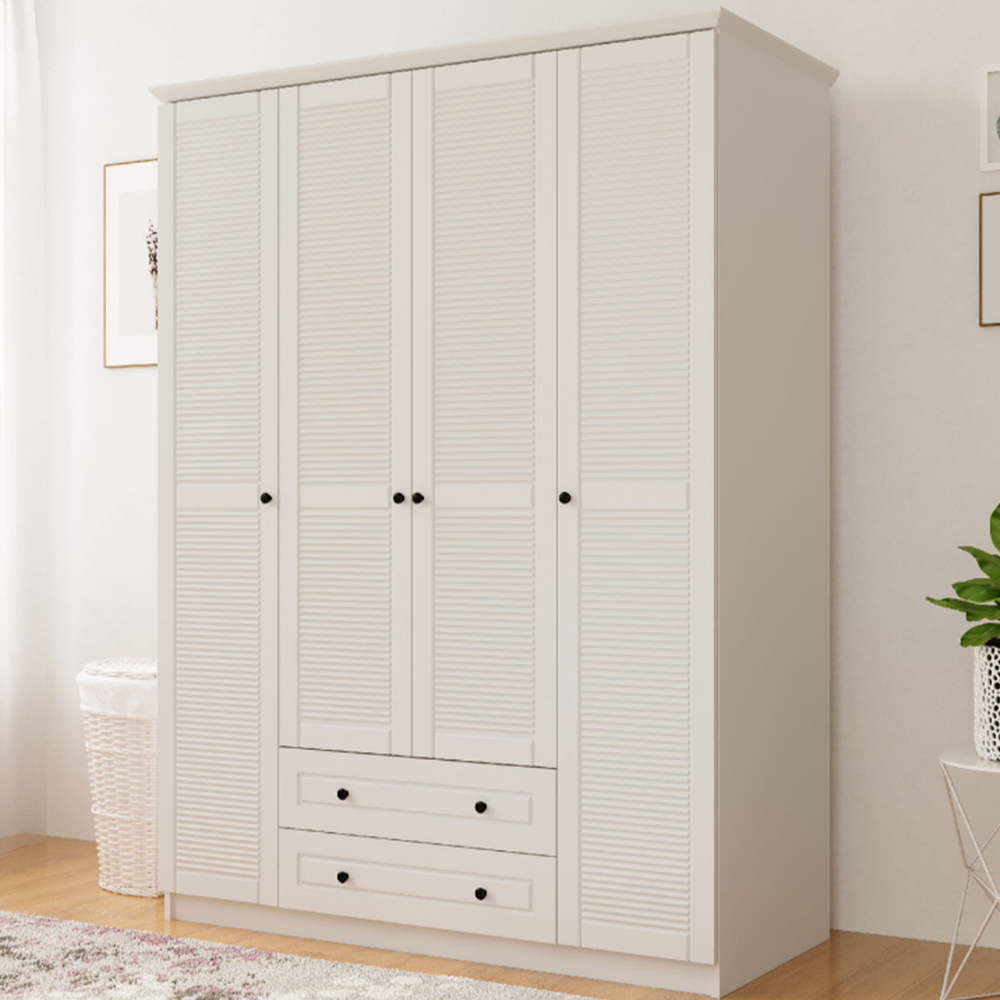 Evu VOLET 4 Door 2 Drawer White Wardrobe