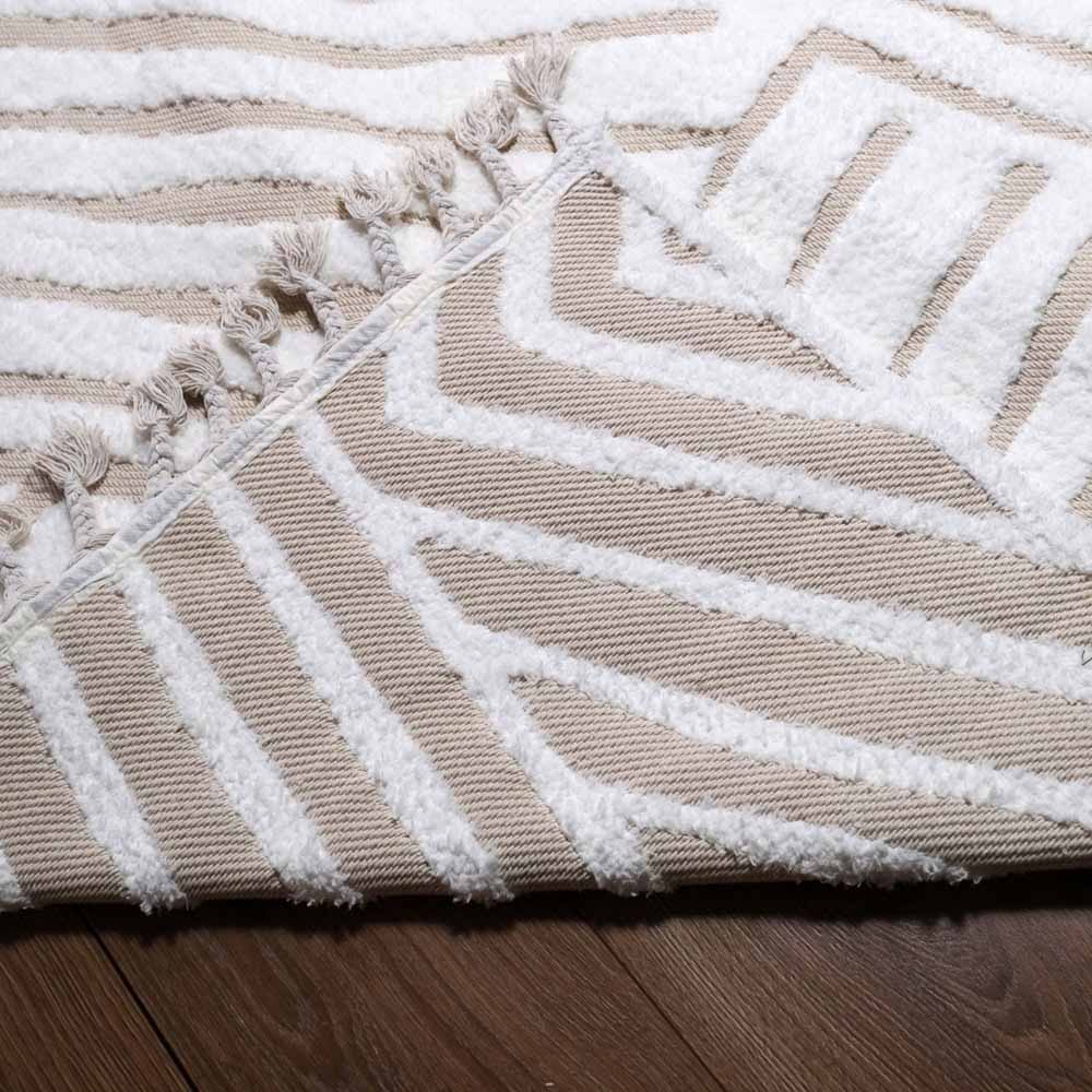 The Evu Waves Rug (150 x 233cm) brings bohemian style to your home. Made from 100% cotton, it's delightfully soft and comfortable. Tassel fringing adds texture and visual interest, complementing its relaxed elegance. Perfect for living rooms, bedrooms, or any room needing a touch of boho flair. Cleaning is easy thanks to its machine-washable design (30°C.