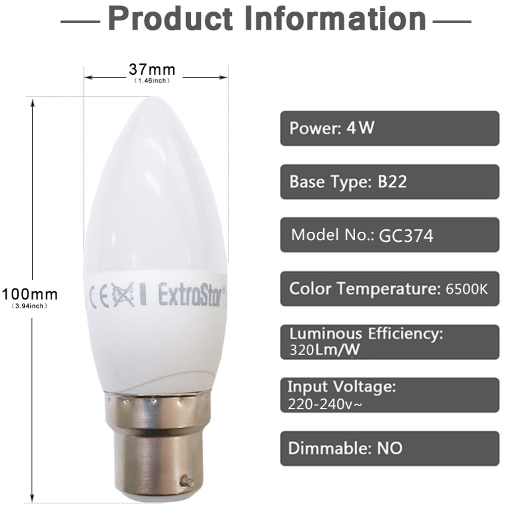 ExtraStar 10 Pack B22 4W Daylight LED Candle Light Bulb