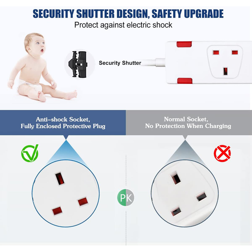 ExtraStar 13A 2m 4 Socket Child Resistant White Extension Lead with Indicate Light