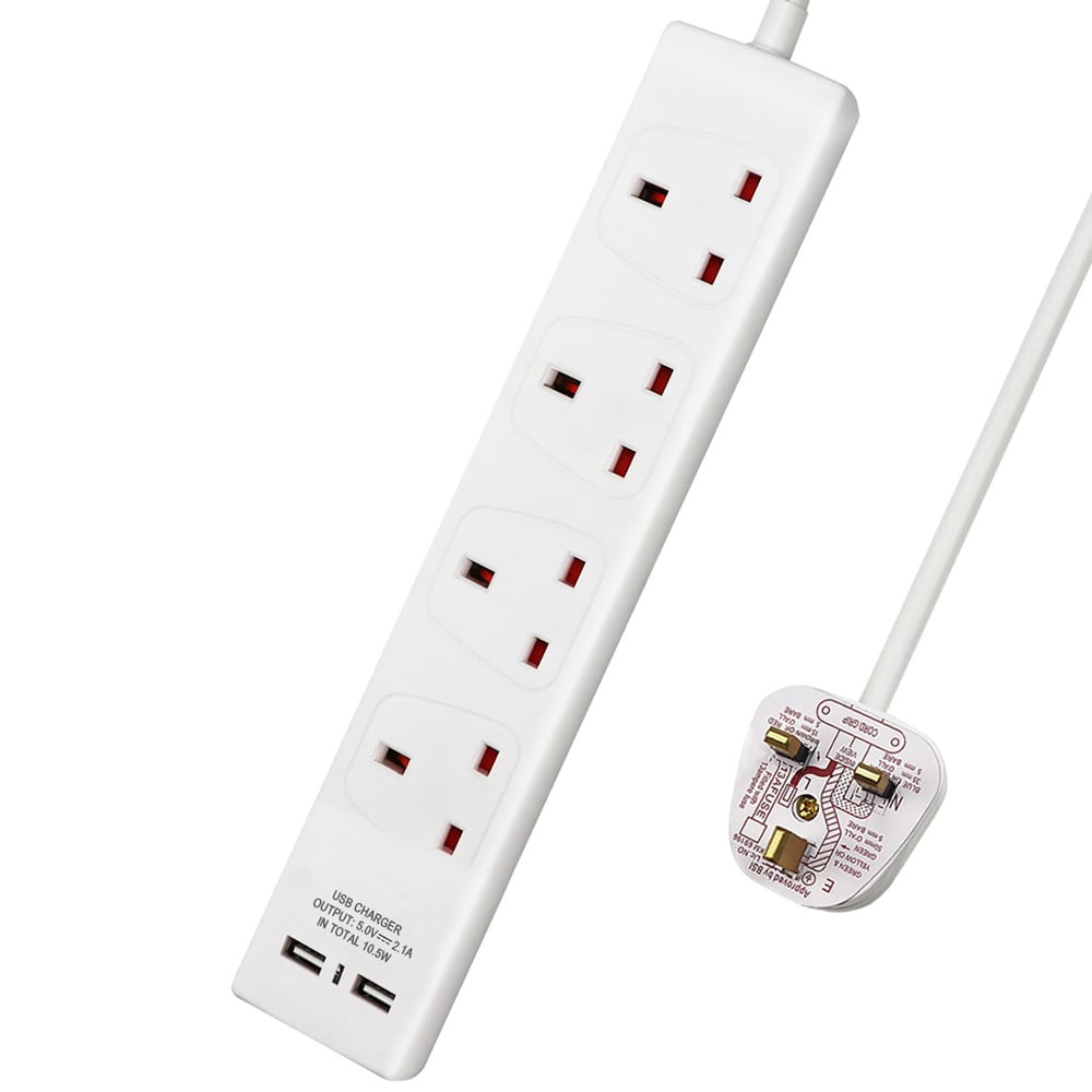 Power up multiple devices effortlessly with this 4-gang extension lead. Boasting four power sockets and two handy USB ports, it's the perfect solution for homes and offices where electrical outlets are in short supply. The 3-metre cable provides ample reach, keeping your workspace clutter-free. Simultaneously charge smartphones, tablets, and other USB devices – all without needing extra adapters. A reliable and user-friendly option for seamless power and charging.