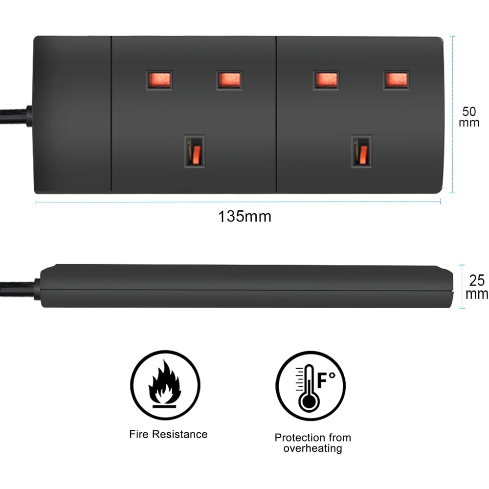 Power up multiple devices effortlessly with this 2-way black extension lead. Boasting a generous 3-metre cable and a robust 13A/250V rating, it's the perfect solution for homes, offices, or workshops. Its durable build ensures reliable performance and lasting quality for everyday use.