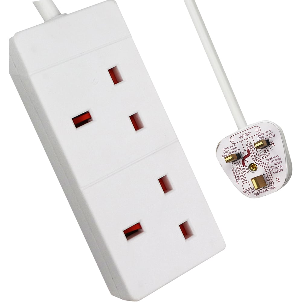 ExtraStar 2 Way White 13A Extension Lead 2m